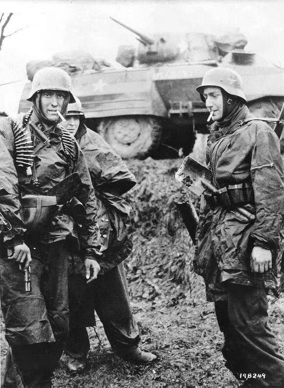 1944年,阿登森林反击战中一名普通德军士兵沃尔特·阿姆布拉什,隶属于汉森战斗群。 图1成为二战中使用频率最高的照片之一,作为各大军事书籍和杂志的封面人物。
