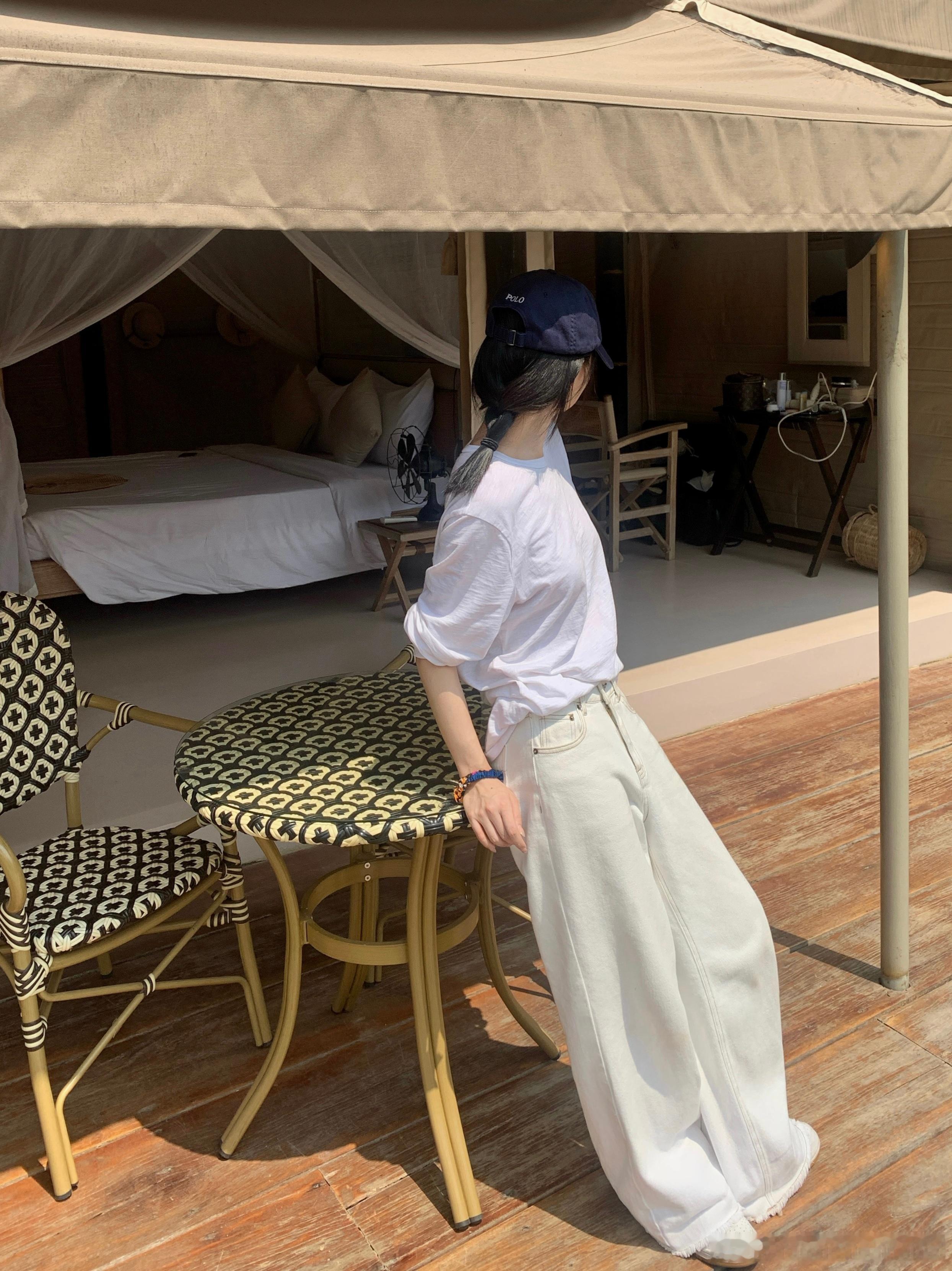 纯白牛仔裤里 这款实穿系数应该是最高的了 随便搭配什么上衣都可以 可时尚可日常 不拖沓邋遢