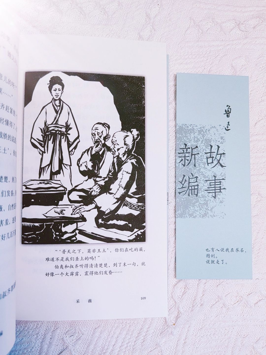 今天重读了的《故事新编》插图典藏本,首先,这本小书拿在手里的感觉实在太好了,纸质书的阅读体验真的无可替代。开本小巧,高克重特种纸封面,质地厚实。封面的压凹工艺低调中透露着格调,内页是护眼的浅浅米白色,指腹摩挲的触感,妙不可言。
