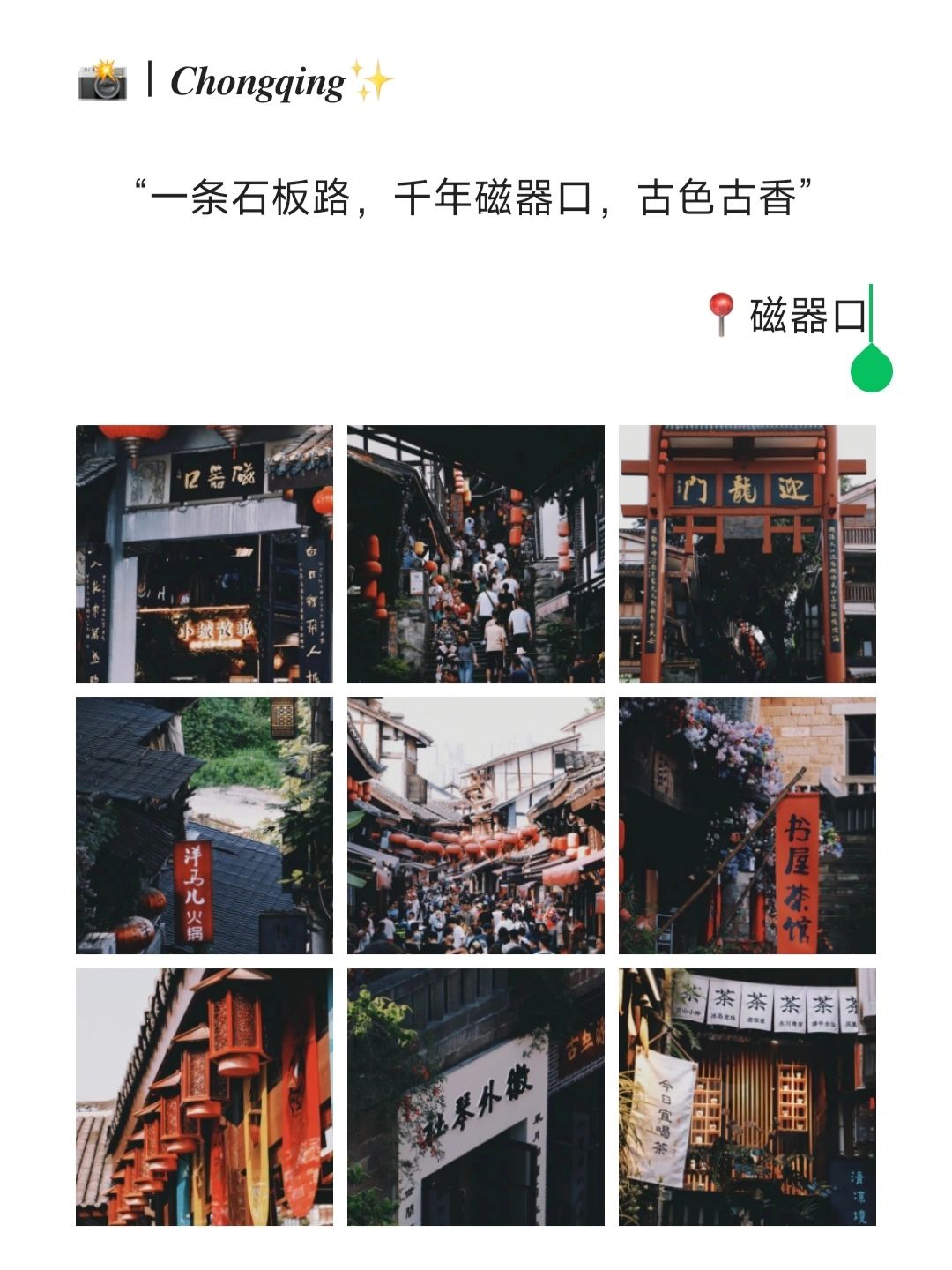 “一条石板路,千年磁器口,古色古香”