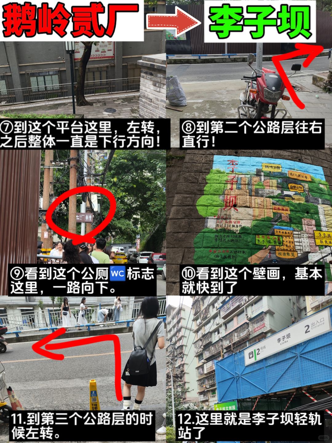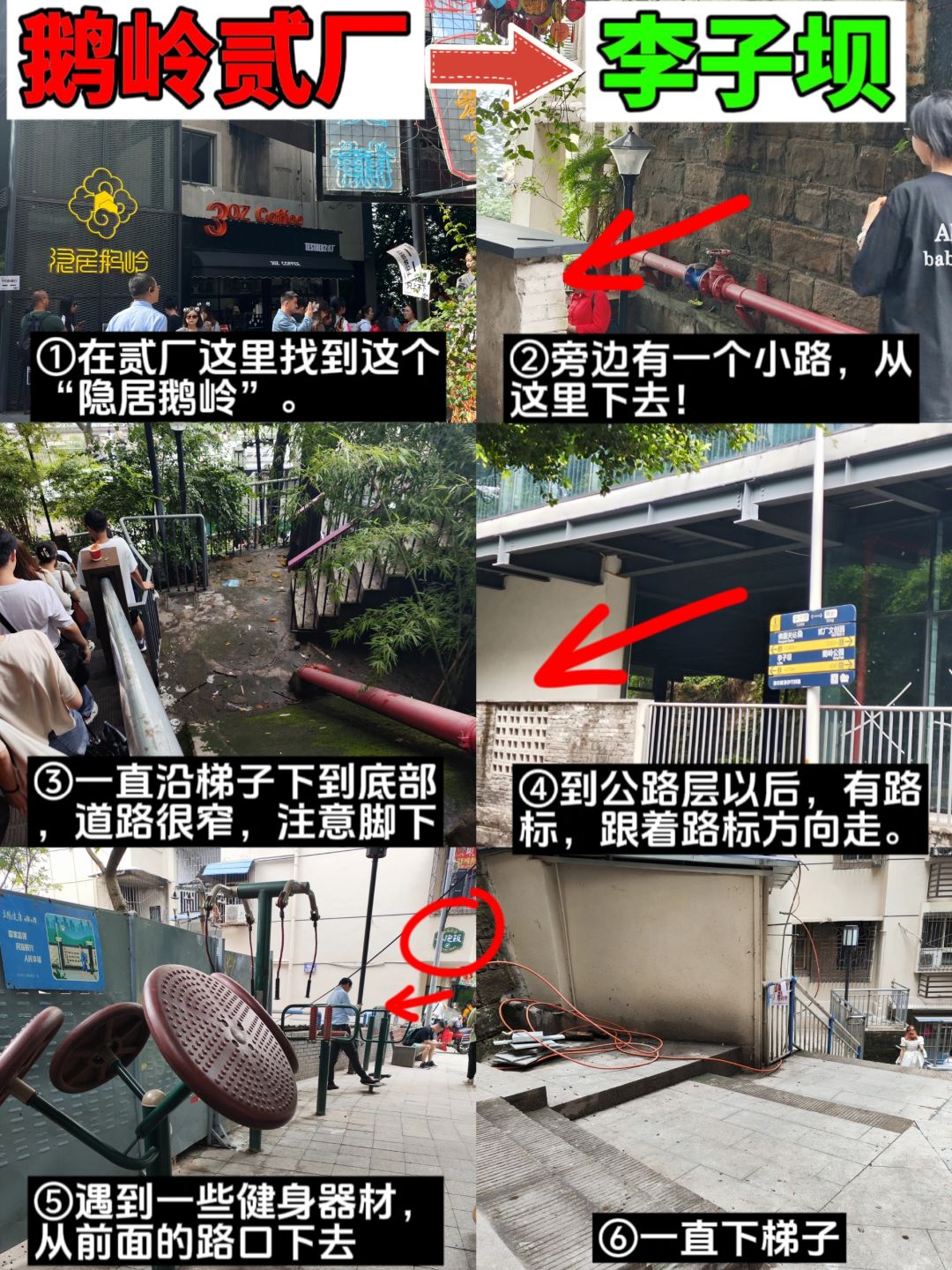 ‼️注意:这三个景点的方向不要搞错了,从鹅岭公园到鹅岭二厂到李子坝才是下坡。