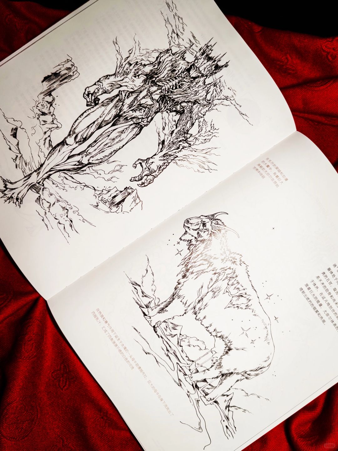 《志怪图鉴:从神话故事到都市传闻怪物CG设计》这本书也极具设计的美感,精美的锁线平装,可以180°平摊。特种纸封面的纹理手感非常棒。夜晚开着台灯,欣赏这些志怪图鉴,轻松get神秘氛围!🔥
