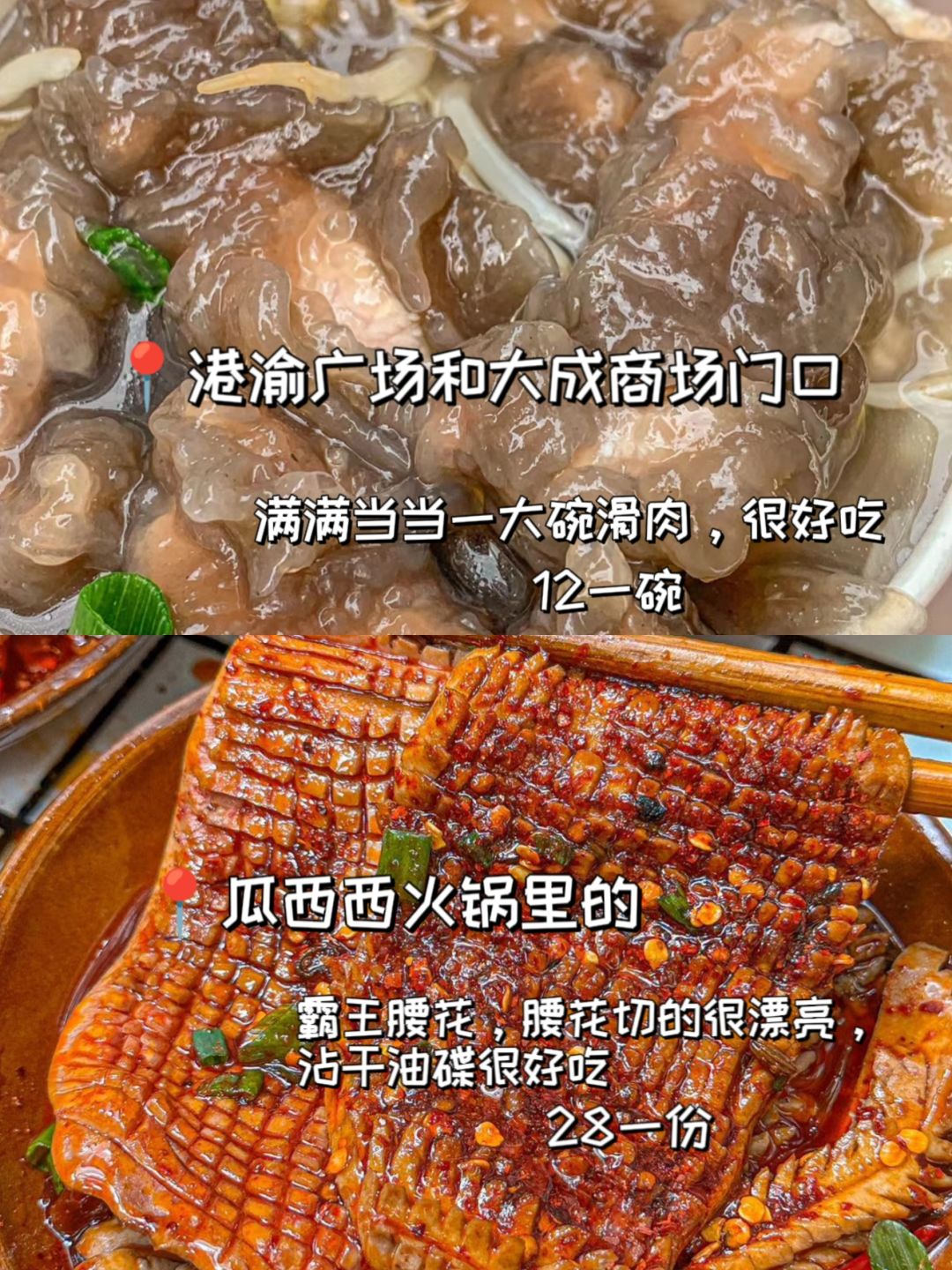 📍渝港广场和大成商场门口:满满当当的一大碗滑肉,很好吃。