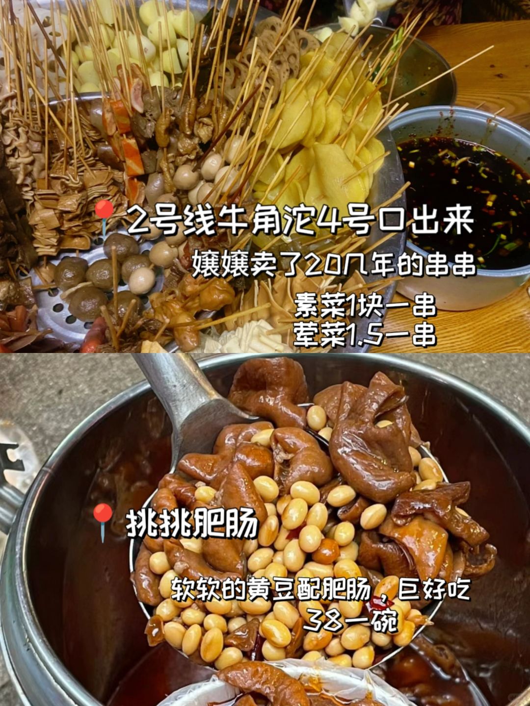 📍2号线牛角沱4号口:嬢嬢卖了20多年的串串,串串干净卫生。
