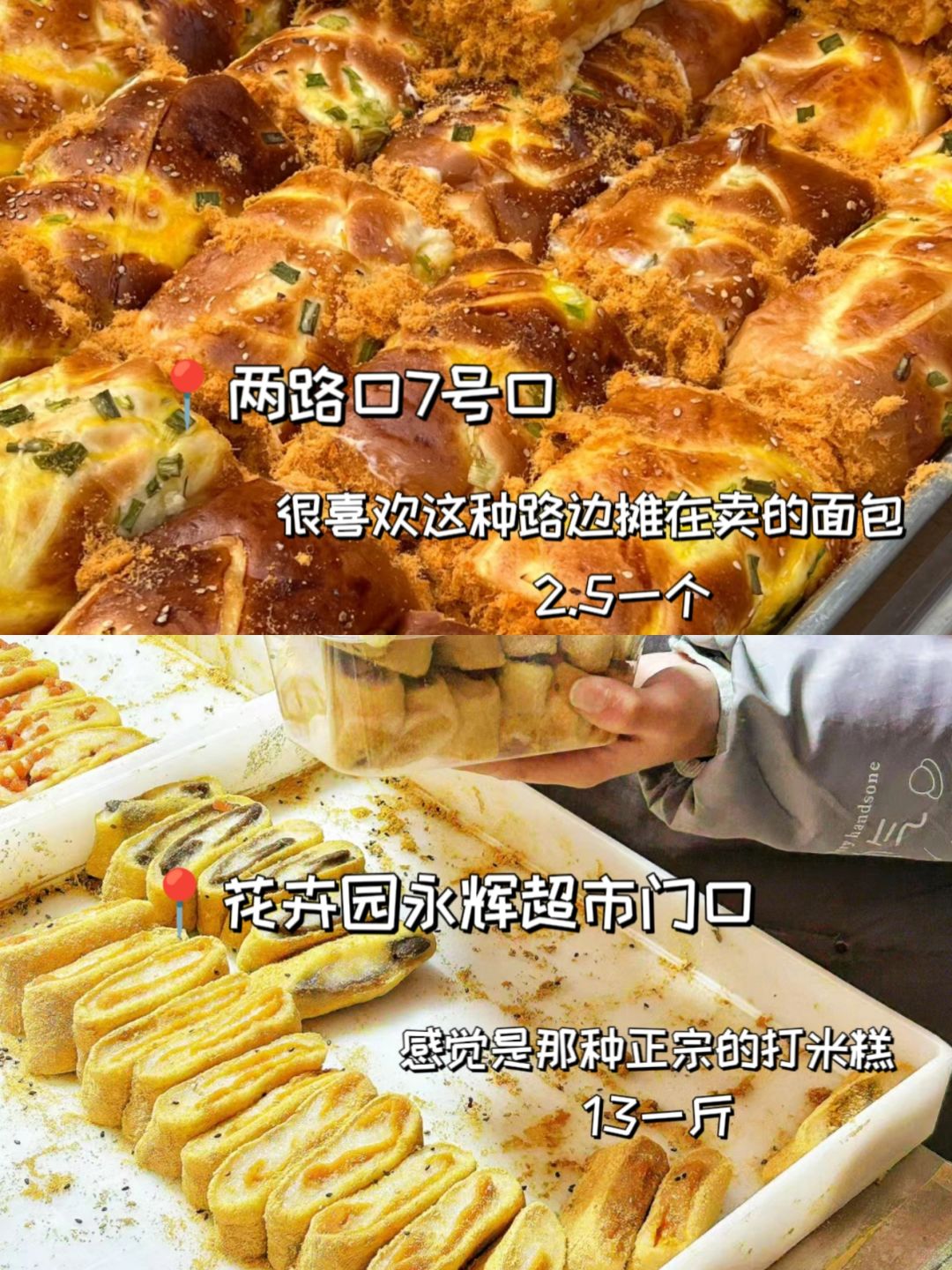 📍两路口七号口:个人蛮喜欢这种路边摊在卖的面包。