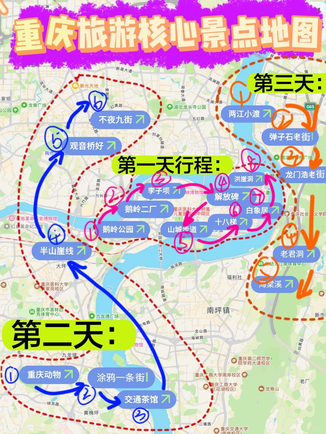 ①这些景点基本都在渝中区,打卡景点虽然多,但是隔得都不远,一天之内还是能打卡完的。