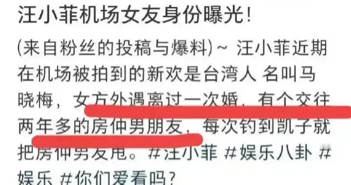 这边前妻大S被爆生完孩子后戴着防溢乳贴露面,那边汪小菲却准备和大S的台湾老乡结婚再做新郎了…… 这对前度夫妇,真是各有各精彩[黑线][狗头] 汪小菲找的新菜,也还是同一风格,江湖女,貌似也不是省油的灯,被传因婚内出轨而离婚……,被发现出轨是因为叫船[黑线]太大声被多次投诉到楼盘管理处 不过,汪小菲的眼光一直这样…… 能怪谁? 这不都是他自找的…缘分吗? 这婚……能结吗[what][what][what] 图3是马小梅的大冤种前夫[黑线]