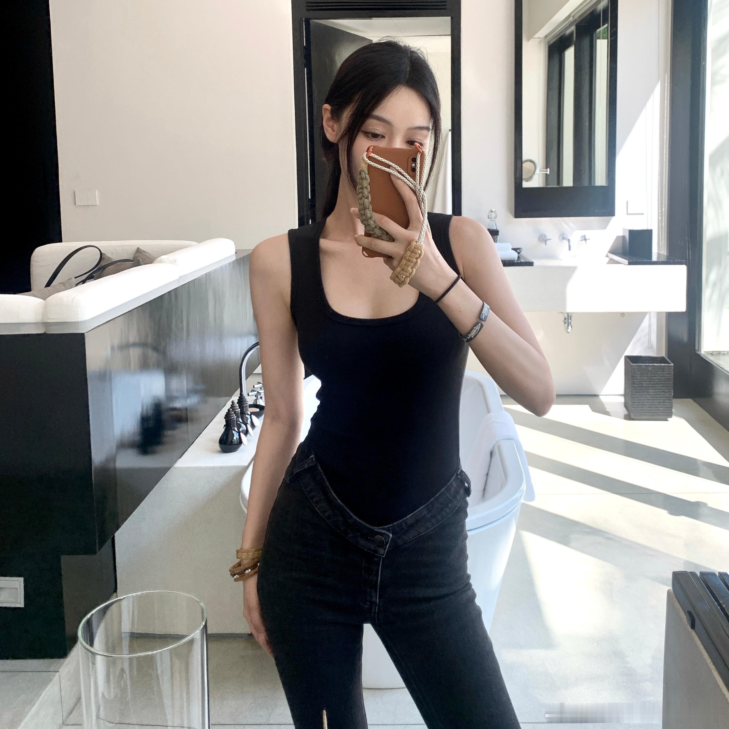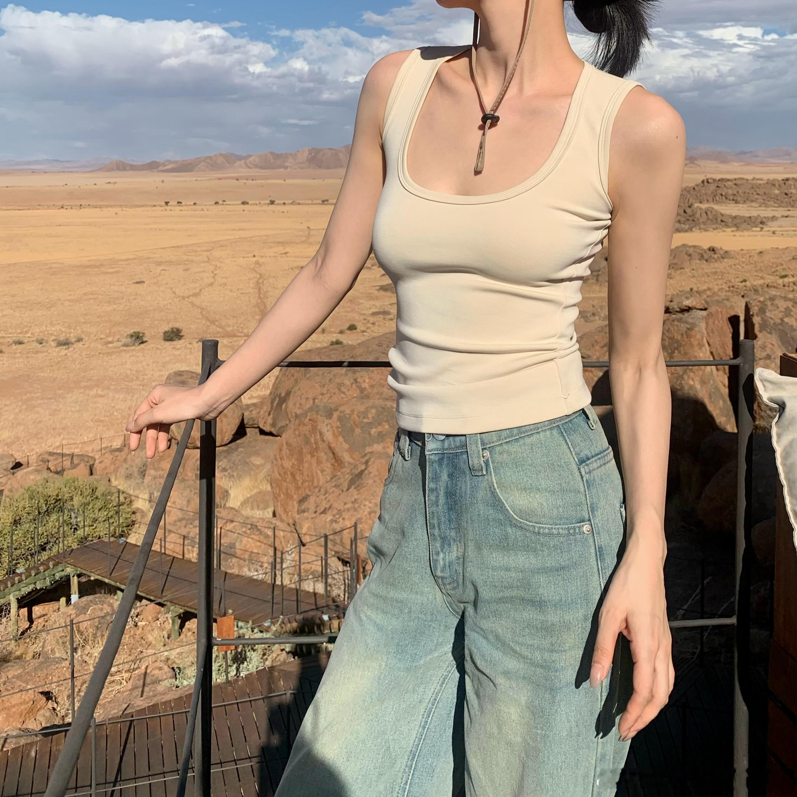 空气层两色U领背心 看到一次买一次!之前出背心大多是针织面料 这次选用的是莫代尔