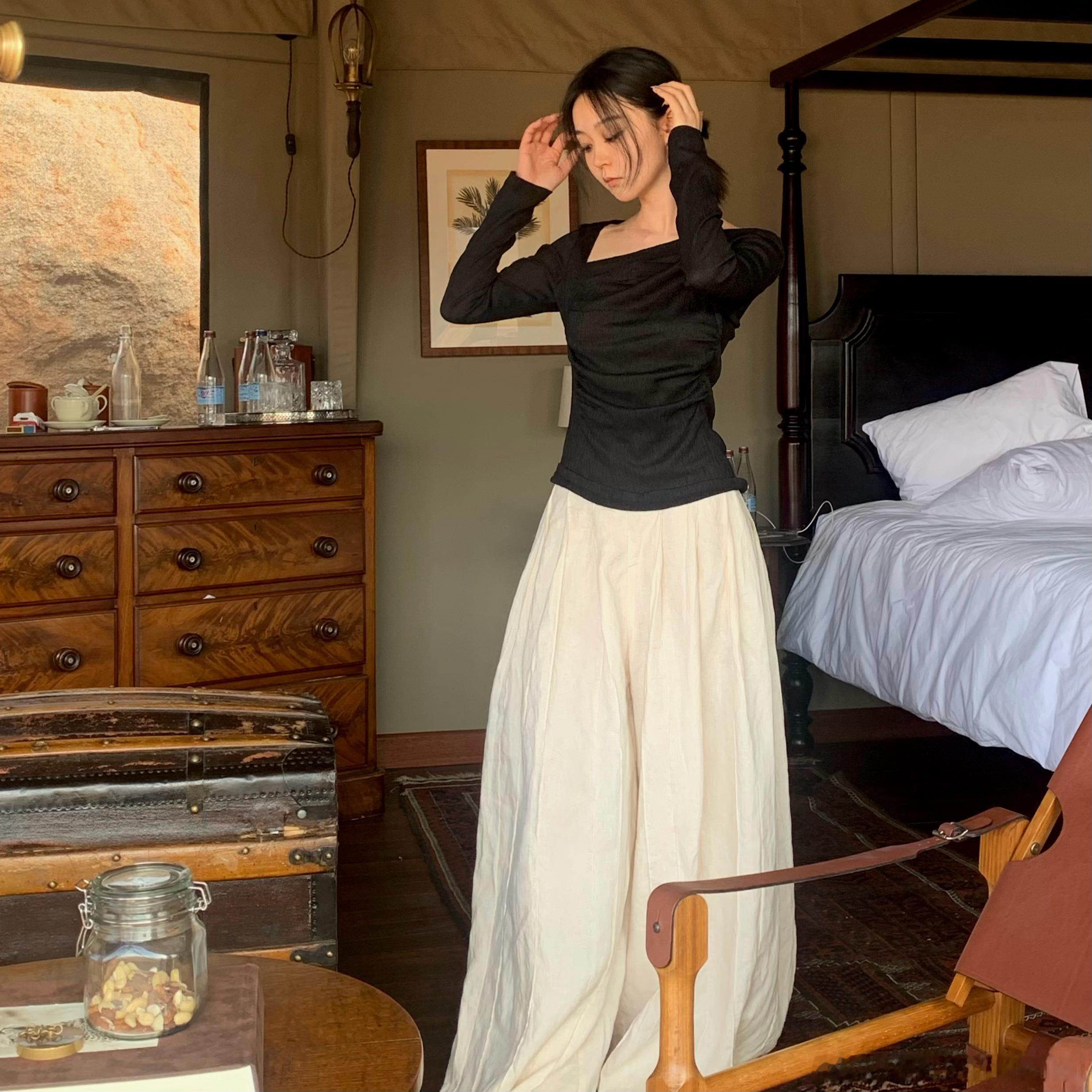 纯色系一点点的设计感 非常好做搭配 修身牛仔裤 宽松亚麻裤 都是不错的选择