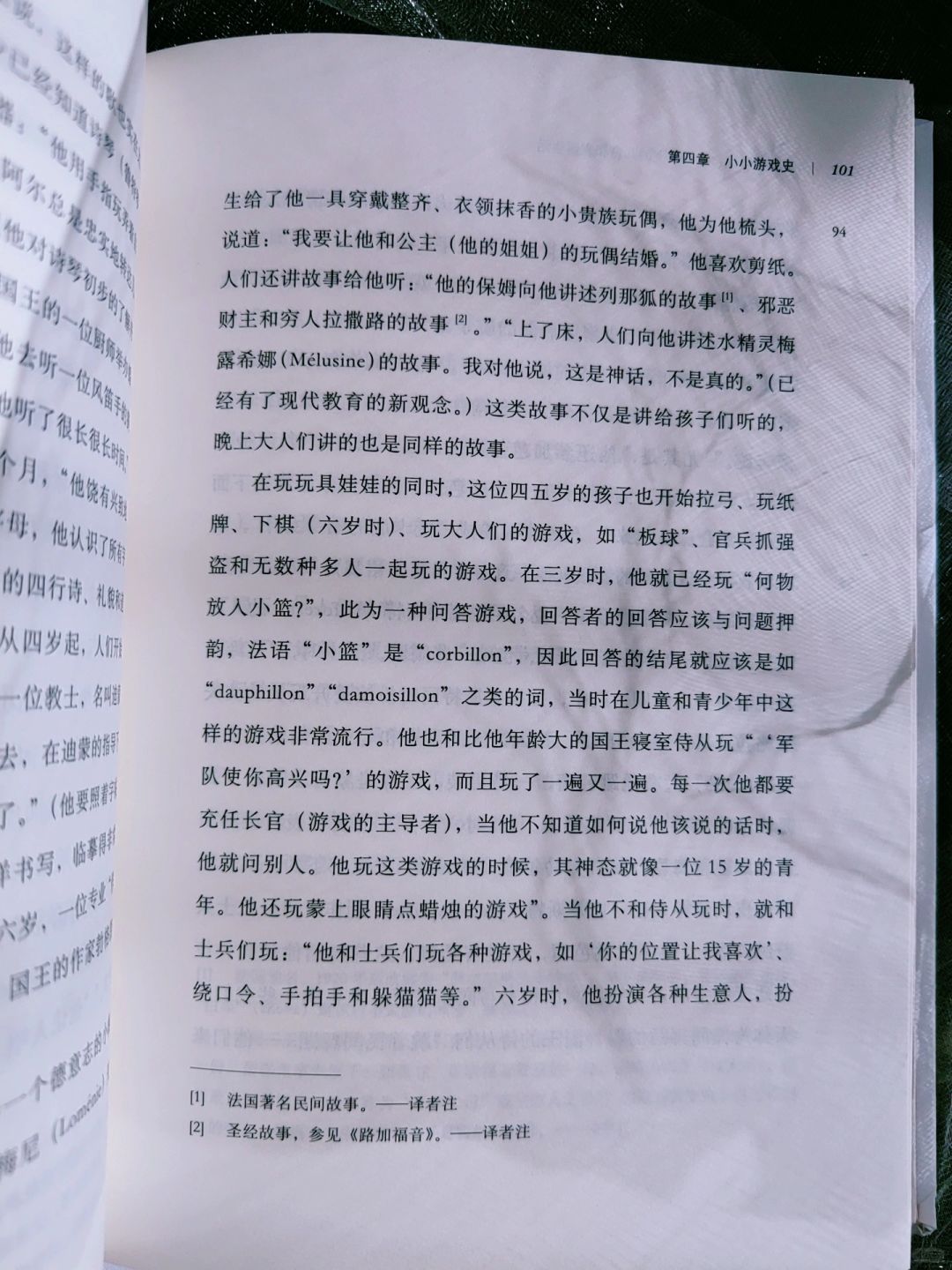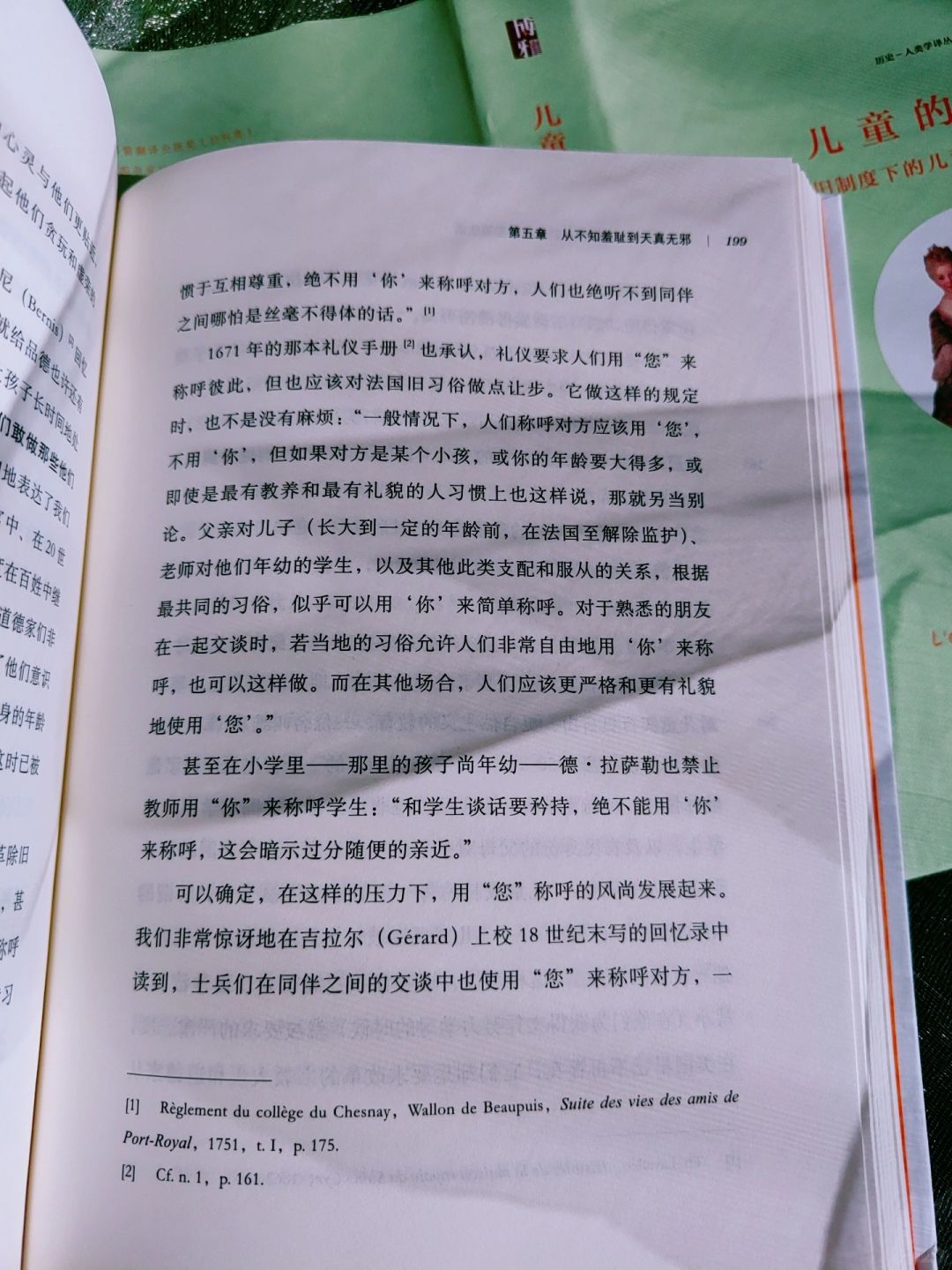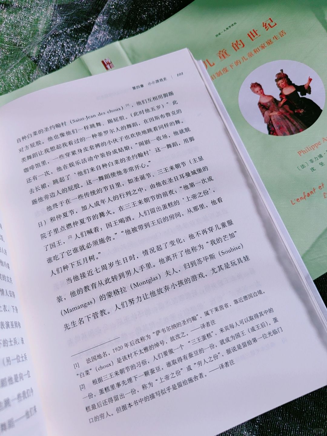 第一部分:儿童的概念。现在我们知道教给孩子的都应该是纯真无污染的语言和知识等等。比如没有大人会主动教孩子说脏话或者其他污言秽语,但是在很久以前,孩子们习得的歌谣等等都是成人化的,并没有明确的身份区分。四五岁的孩子不仅玩娃娃玩具,同时也会玩成人的“板球”、士兵等游戏。而到了七岁,他就不再是孩子了,人生就进入了新阶段了,他会学习骑马和射击。同时盛大的集体狂欢也是不存在儿童游戏和成人游戏的区分的。