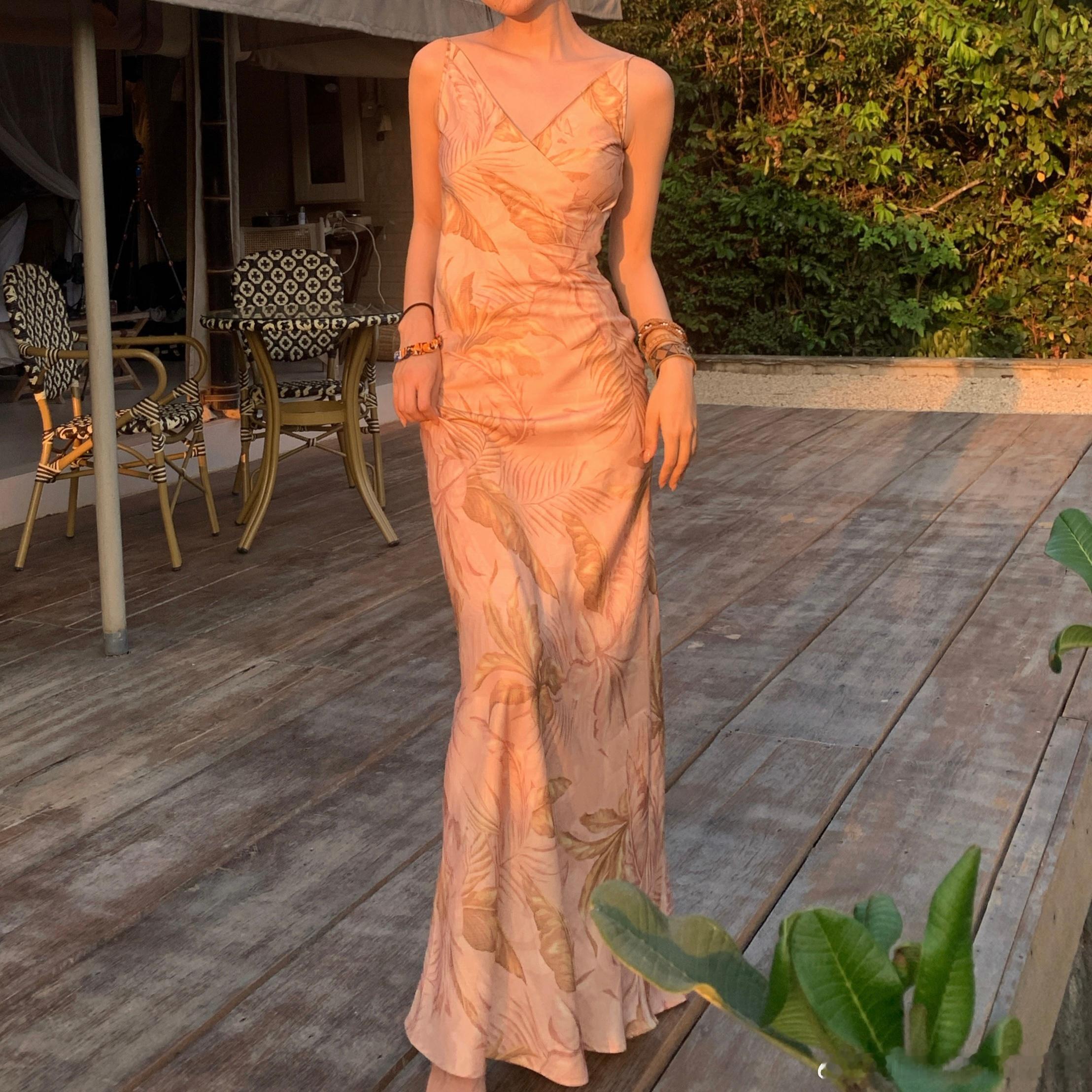 胸部以下开始掐腰 长裙款到脚面的长度 非常显高显瘦显窄的版型