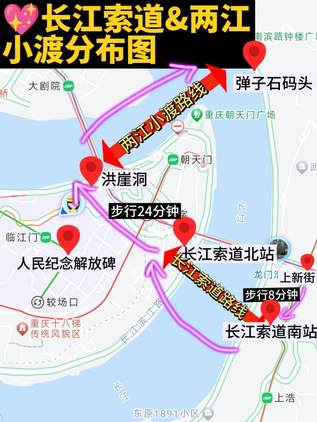 💖TIPS:①如果只坐两江小渡,可以从弹子石码头坐到洪崖洞码头,可以省去爬坡。