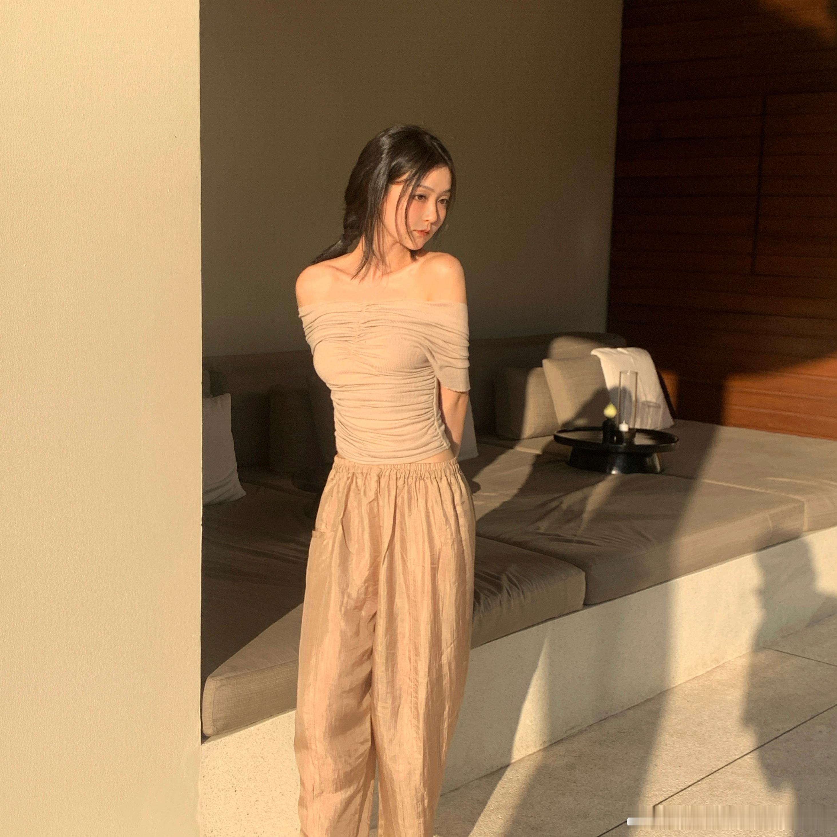 搭配同样轻柔的裤子或者半裙 整体就很温柔