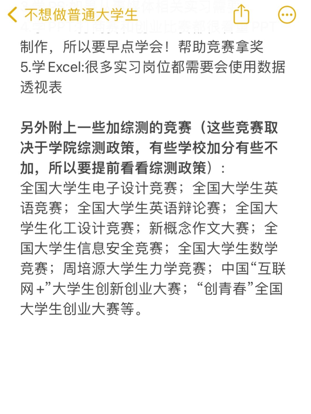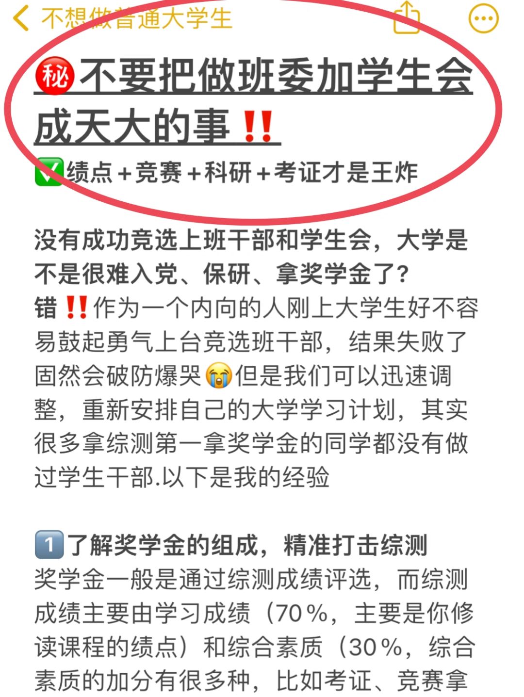 从1⃣综测组成2⃣绩点3⃣竞赛3⃣考证4⃣科研论文5⃣提升技能方面讲解如何拿到高综测分,弥补没选上班干部的遗憾‼️