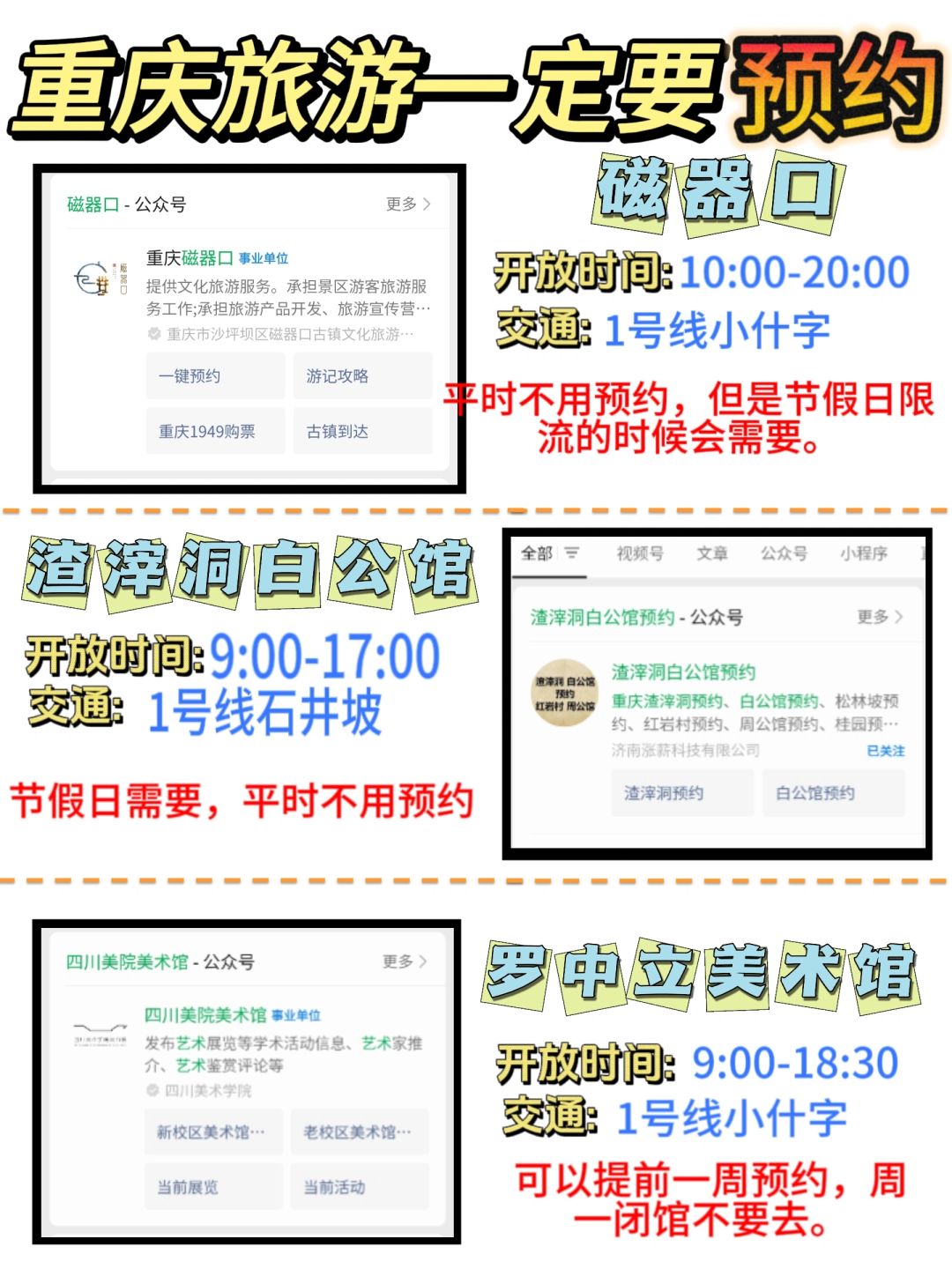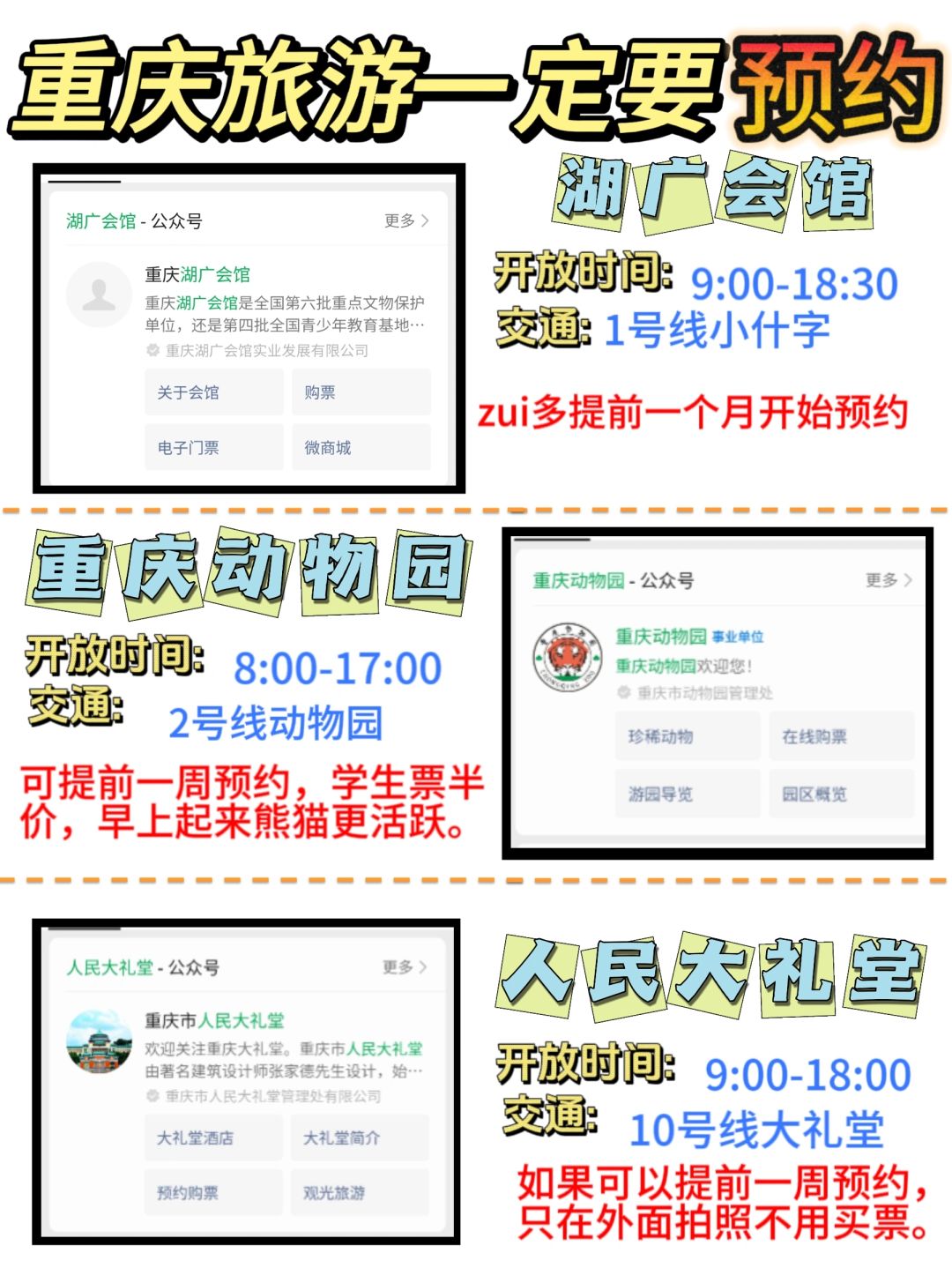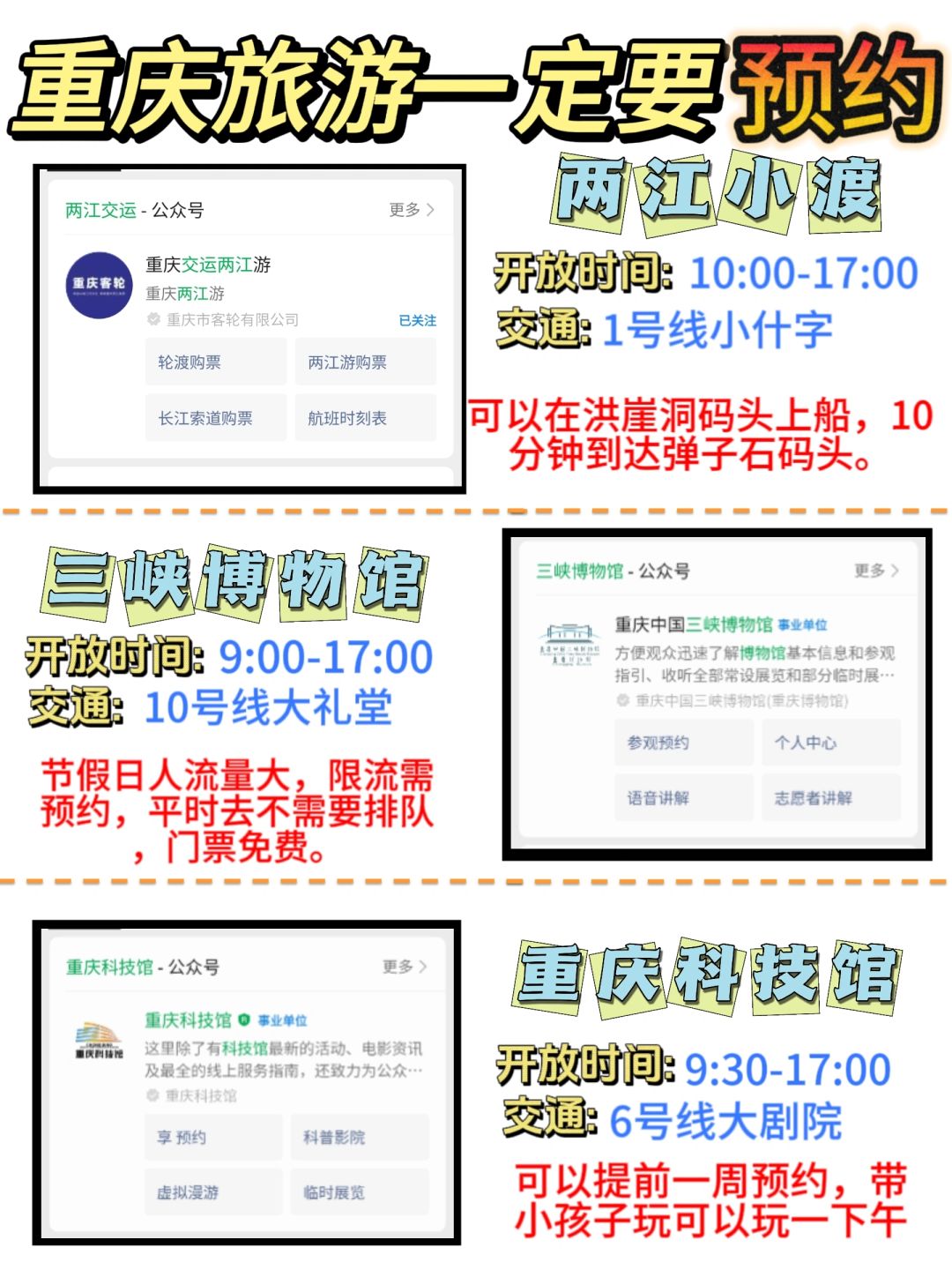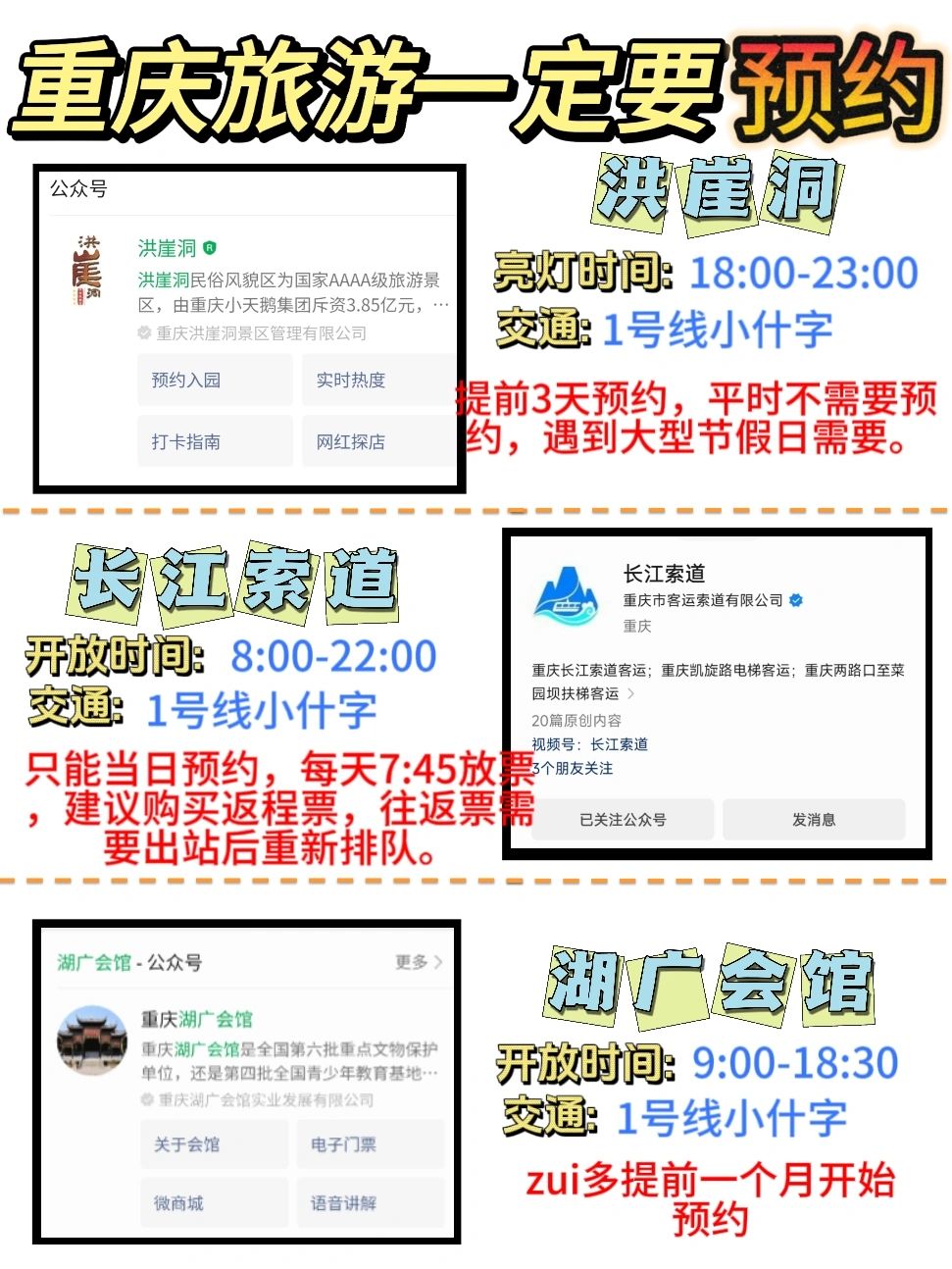 重庆大多数热门景点主要分布在主城区,节假日人多并且也容易拥挤,所以,为了减少线下排队时间,一定要先在网上预约‼️‼️