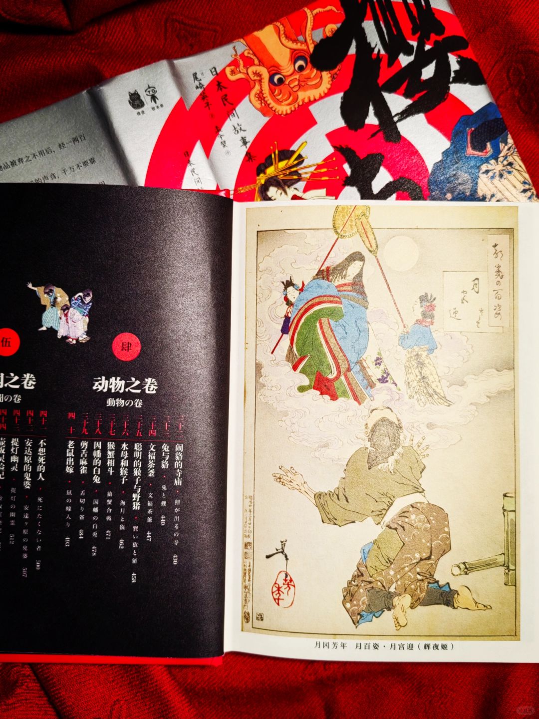 《樱与刀:日本民间故事集》中收录了130多幅插画,我非常喜欢前面十幅彩色的浮世绘,好像一秒就能穿越到那些怪谈故事中。