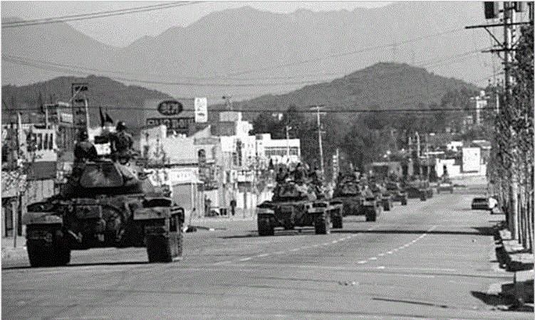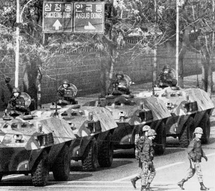 1979年12月12日,韩国陆军少将全斗焕联合韩军内部秘密组织“一心会”成员卢泰愚少将和郑镐溶少将,发动军事政变,空降部队、步兵团及战车部队等单位(甚至停战区前线预备部队)从首都圈周边各地域向汉城(今首尔)进发,开入政府各部聚集的中央厅一带,经过数起交火事件及人员伤亡后,陆军本部、国防部均遭到反叛军占领。在政变成功后,全斗焕夺取了韩国最高权力,并在1981年“当选”为韩国总统,开启了他8年的统治。