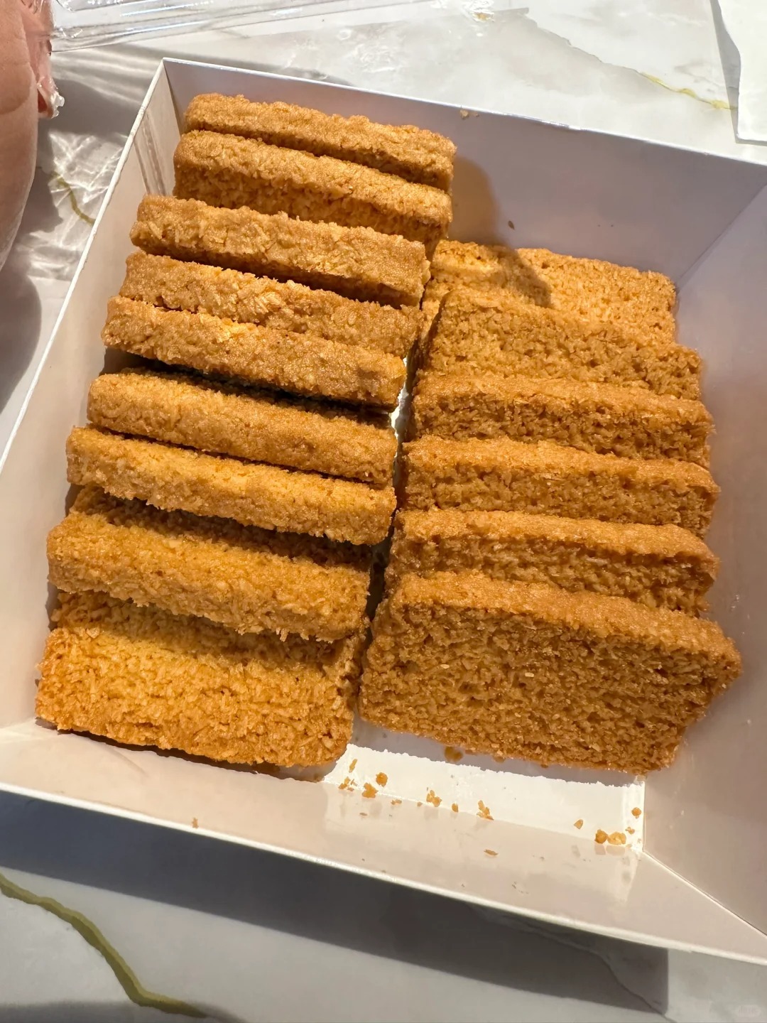 鲍师傅新品 好吃到根本停不下来😋 今日周末去铁西万象汇打光子嫩肤和水光针,进行了周末例行的鲍师傅排队,只要每次路过都不想错过的我最爱的肉松小贝!!!他们家所有口味我都品尝过,但我独爱咖啡小贝,咖啡味儿一直得宠哈哈哈哈哈哈 只是很奇怪咖啡味儿不能按个数卖 只能按盒卖 耽误人家瘦身 今天老师时候看到新品 椰丝脆脆奶酥 这个名字的每一个字都打中了我的味蕾 19.8一盒 真的太好吃了吧 晚上拿回来本来只想吃一个的 但一个接一个 根本停不下来😄
