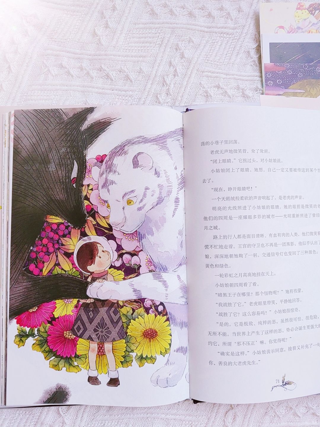 我们小时候也会有不好意思讲出来的小秘密,比如不敢独自过马路,害怕小虫子,不敢交新朋友。在《十个月亮》故事种,小女孩最终跟大老虎一起打败了暗黑王子,她也勇敢地完成了妈妈交代的任务。