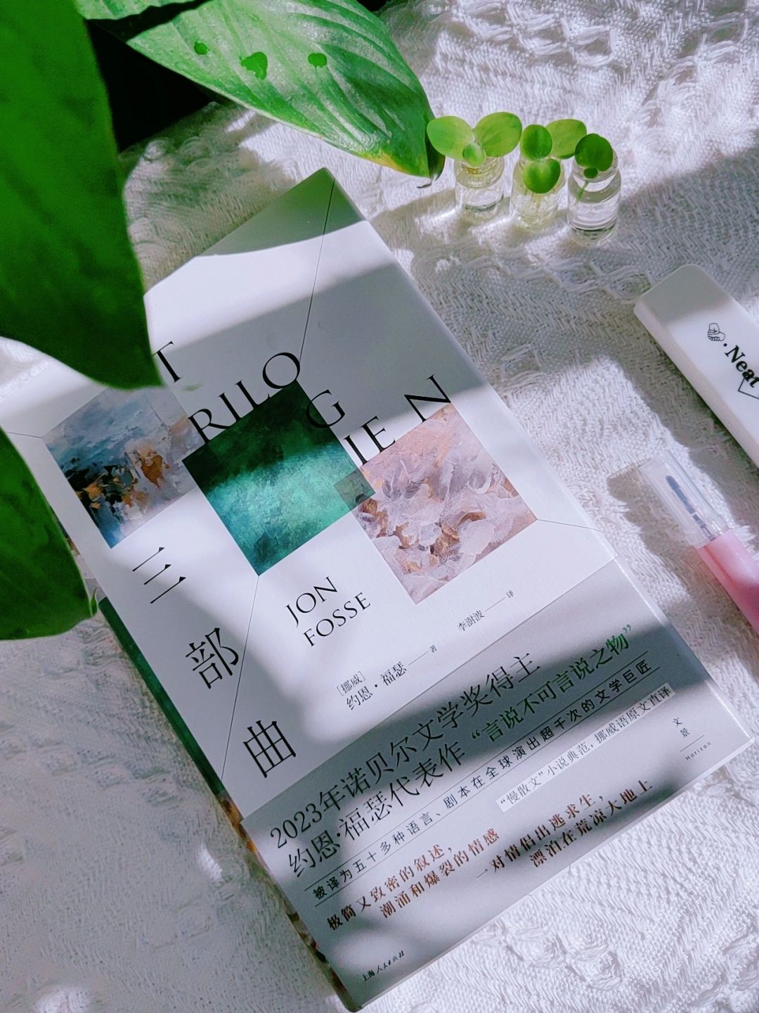我会被文字打动 最近广东也冷得不像话,窝在暖暖的被子里一口气读完了《三部曲》,在约恩·福瑟的文字里迷失了,惊为天人!!!好想像每一个都安利他!
