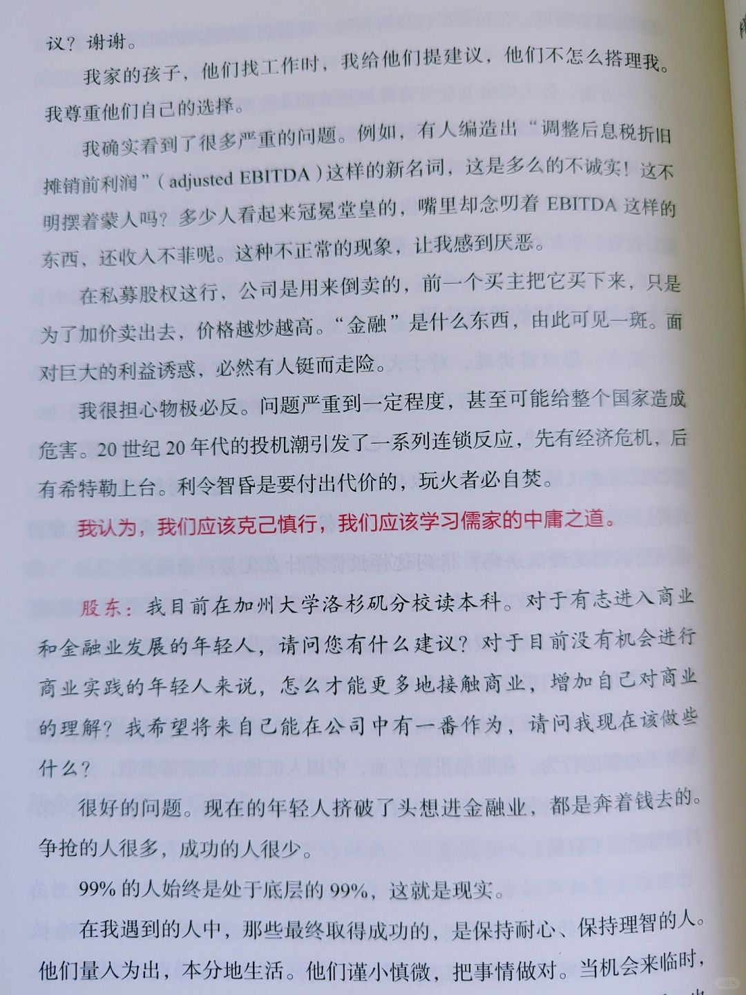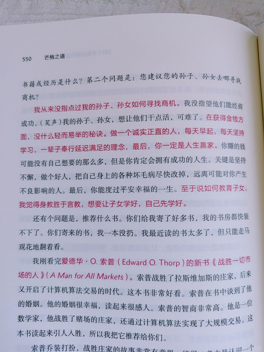 书中原汁原味再现了查理的投资智慧法则。不管是对投资者还是普通读者来说,都具有深刻的实操性与启迪性。涵盖了睿智的世界变革观察与商业市场洞、投资之道、思维模型、人生哲学等等方面,我愿称之为“幸福之书”。