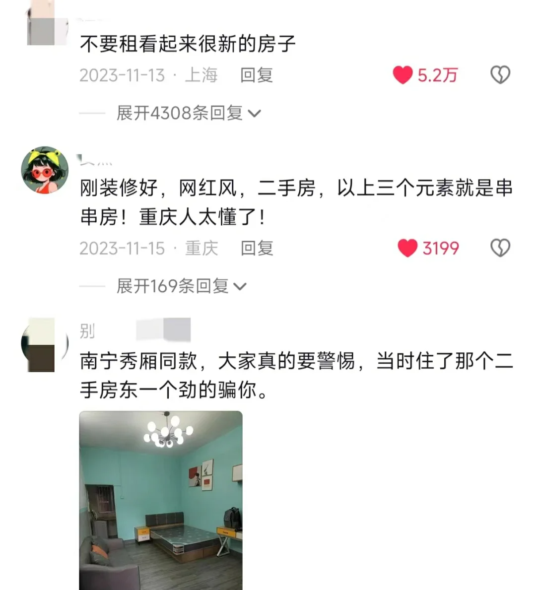 租房一定要小心串串房!!!串串房简单来说就是甲醛房!白血bing的祸害来源!-怎么辨别串串房?味道刺鼻,家具很新,拎包入住,妥妥网红风格,没生活气息…一定要警惕!