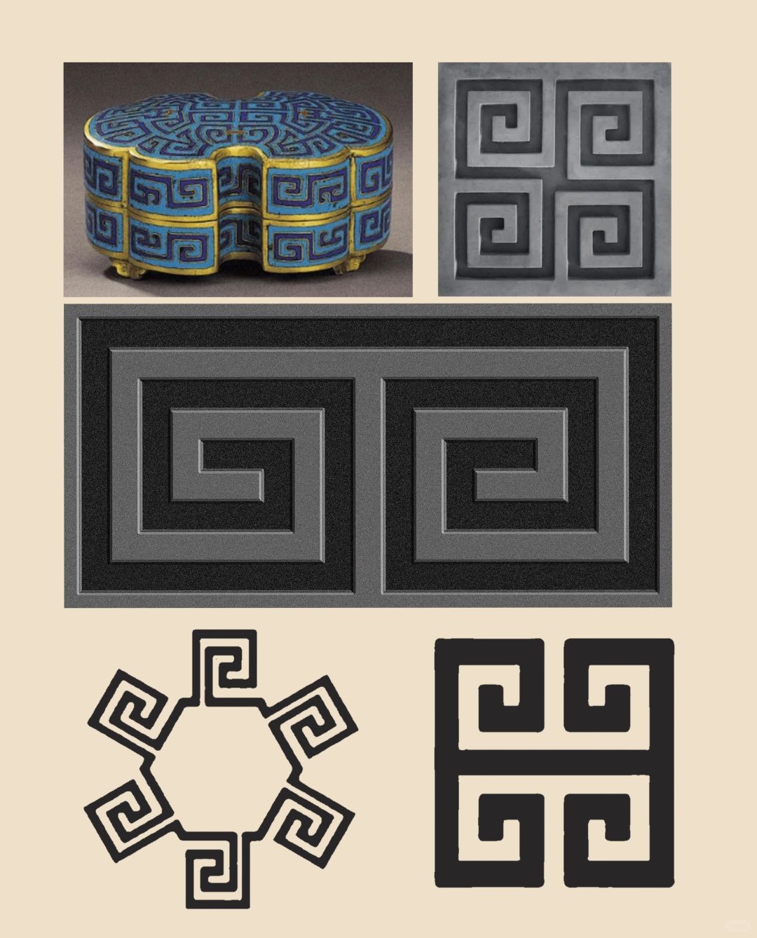 大家好,欢迎来到【某先生】课堂之中国传统纹样篇,今天为大家讲述的是关于《回纹》的故事~ - 回纹,也被称为回字纹, 是一种传统的几何装饰纹样, 主要由横竖折绕组成,形如“回”字。 - 这种纹样的来源可以追溯到新石器时期, 在商代时期, 回纹兴盛并应用于各种工艺品和建筑装饰。 - 回纹构成形式的回环反复和延绵不断, 因此回纹具有连绵不断、吉利永长的吉祥含义, 在民间,回纹也被称作“富贵不断头”。