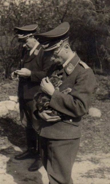 二战时期,德军士兵与猫