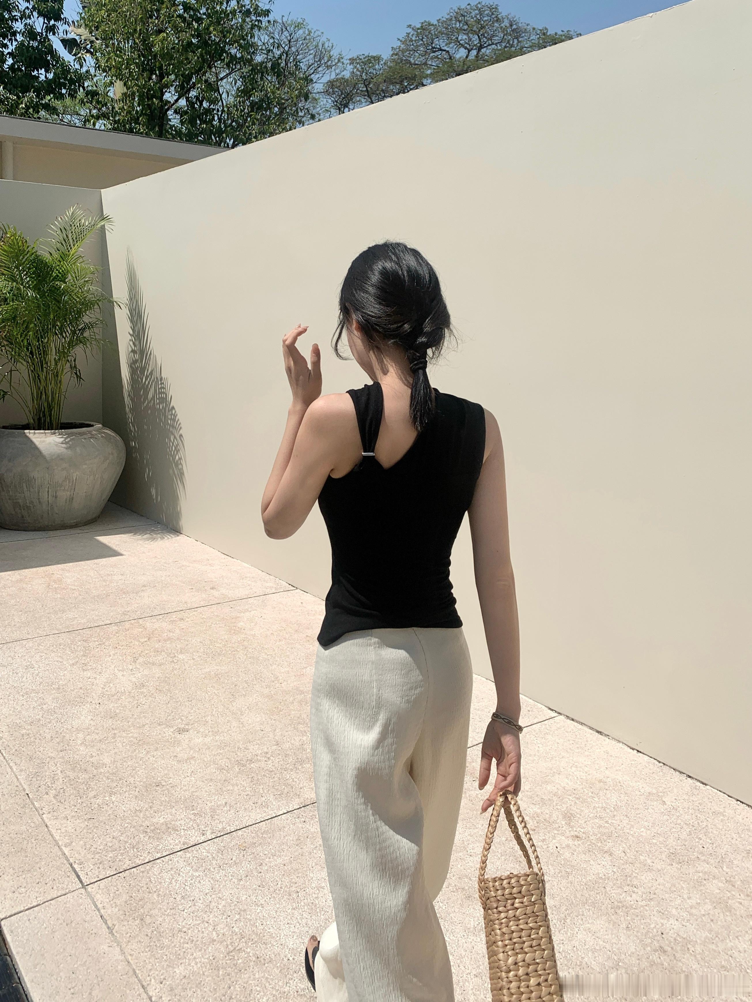 还能做内搭 穿在里面足够服帖 到了室内脱下来 极简背心的基础上 背后的小银扣又显得很精致有设计感 不会单调无聊