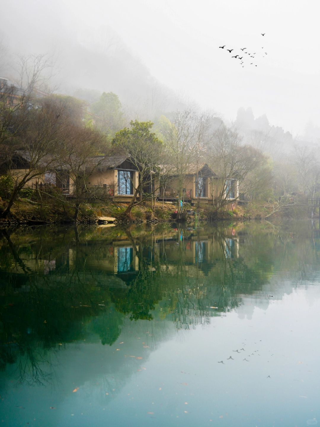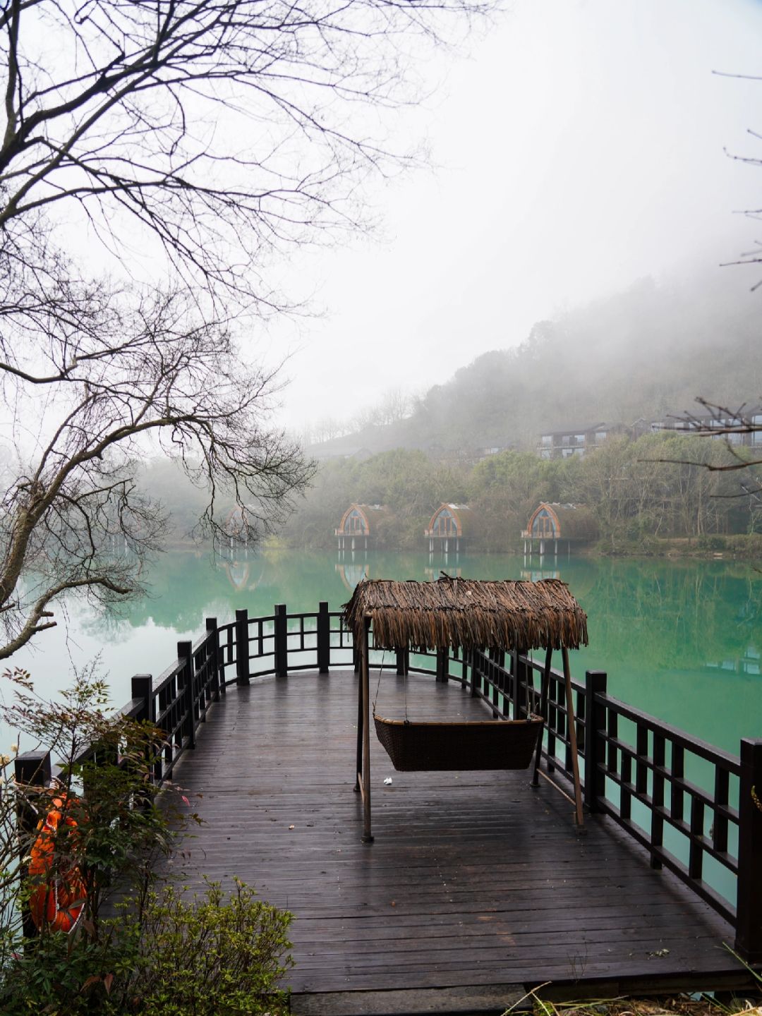 🍃我们入住的是垂钓船屋,每一间都是独栋私密性很高,在屋里就能看到湖光山色,清晨下雨的话,还有雨雾缭绕于山水间,宛如仙境