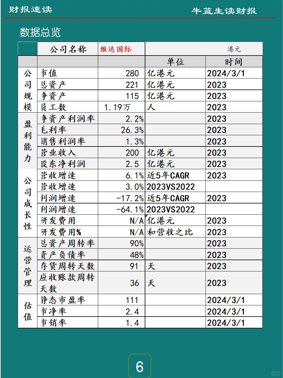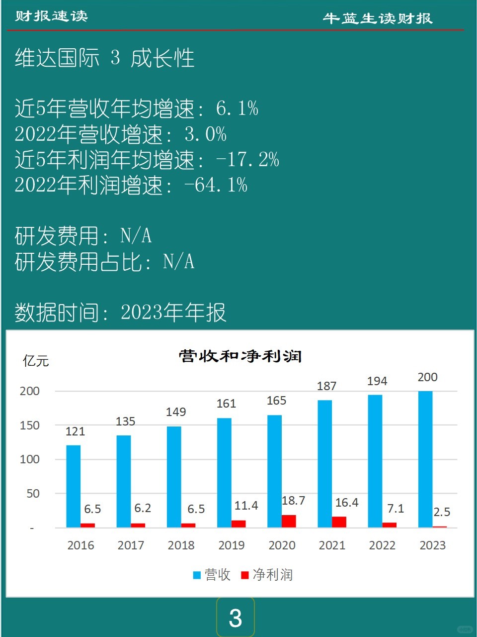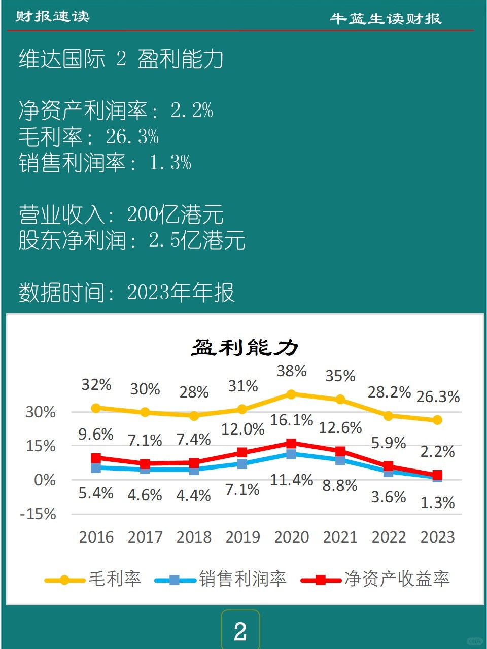-2023年全年维达国际营收200亿港元,实现归母净利润2.5亿港元。相比2022年,营收和净利润分别增长3.0%和-64.1%,盈利大幅下降。2020年和2021年,维达的净利润明显高于疫情之前,这2年公司的业绩是受益于疫情的;2022年和2023年,营收继续增长,但利润则减半再减半。
