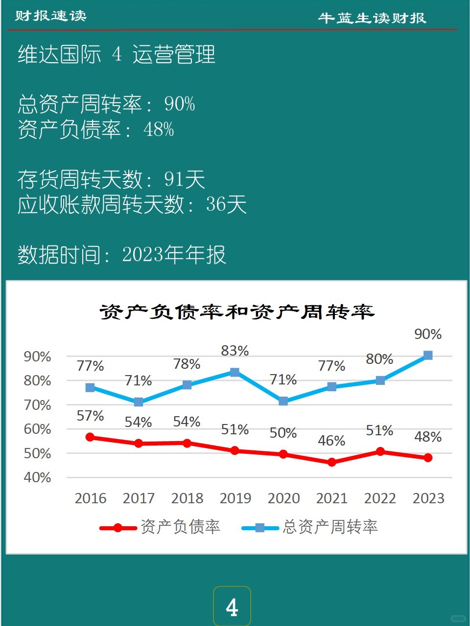 -资产负债率48%,合理稳健;总资产周转率90%,较高,并且近几年在逐年改善。