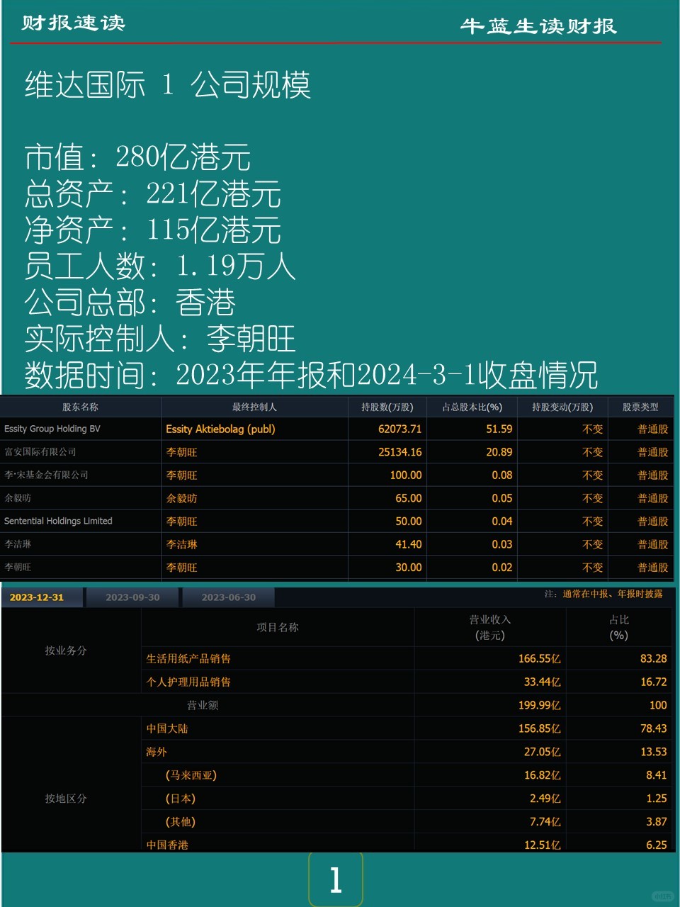 维达国际控股有限公司是一家投资控股公司,主要从事销售生活用纸产品业务。公司在中国内地、中国香港及海外运营业务。公司通过两个业务部门运营:生活用纸产品部及个人护理用品部。公司通过其子公司还从事买卖木质纸浆及机器业务。
