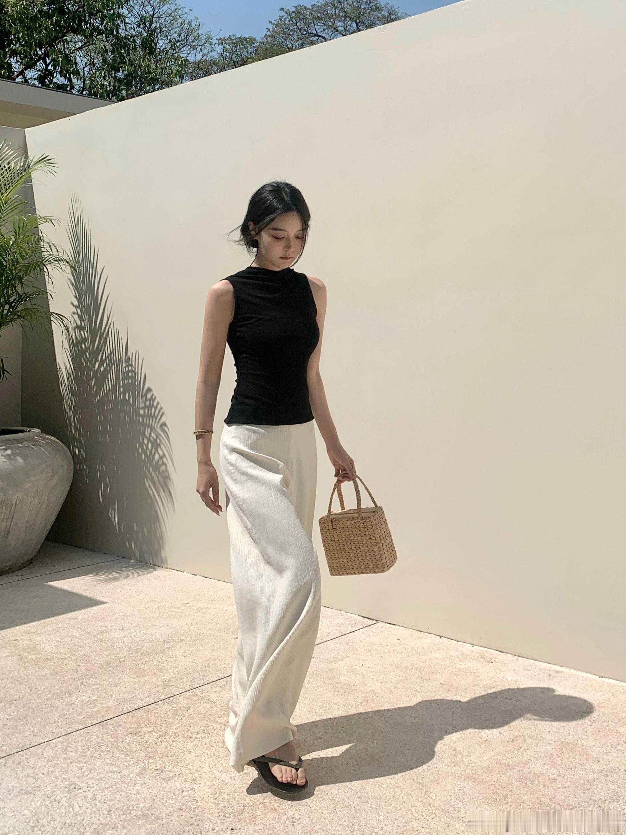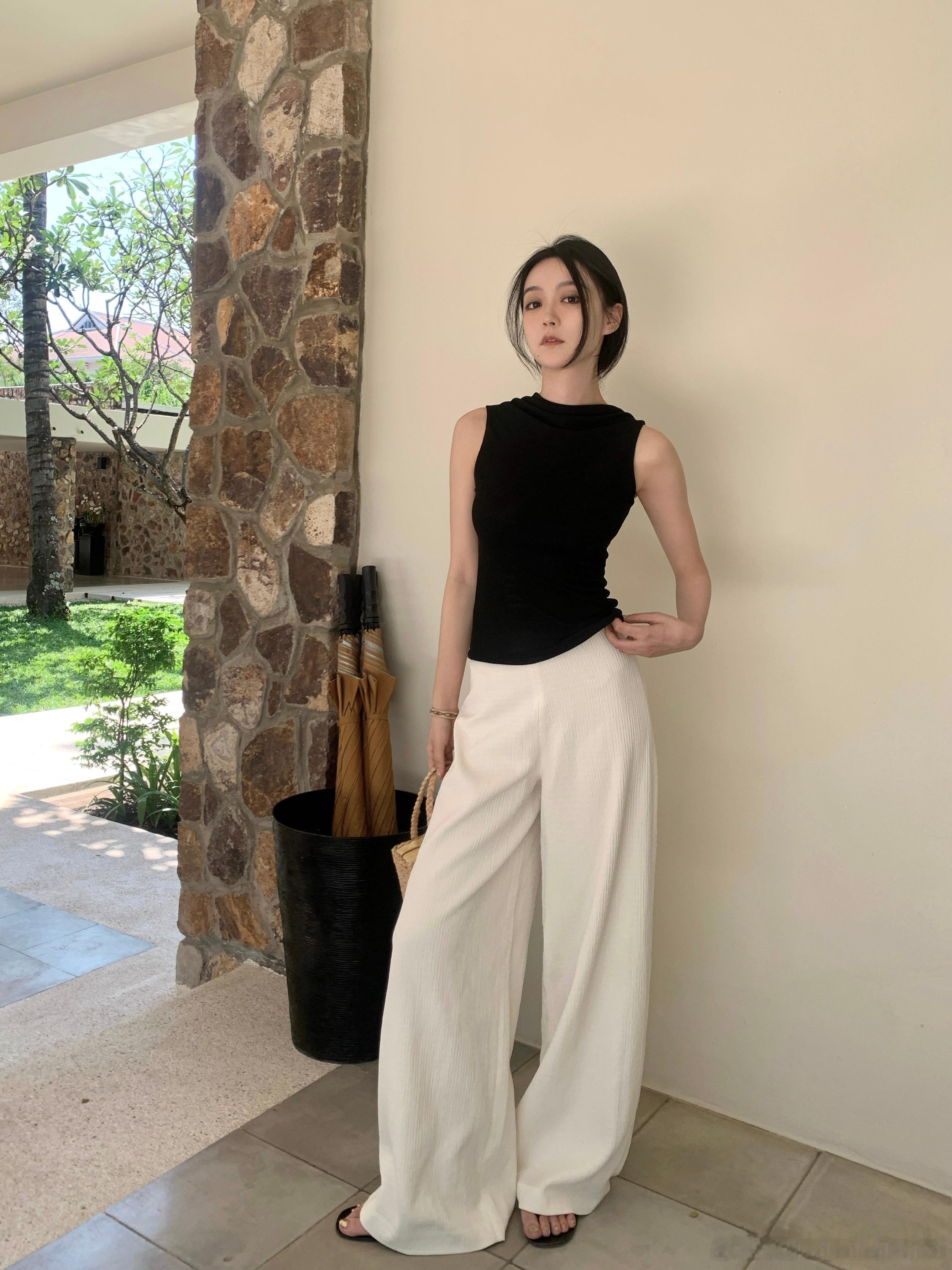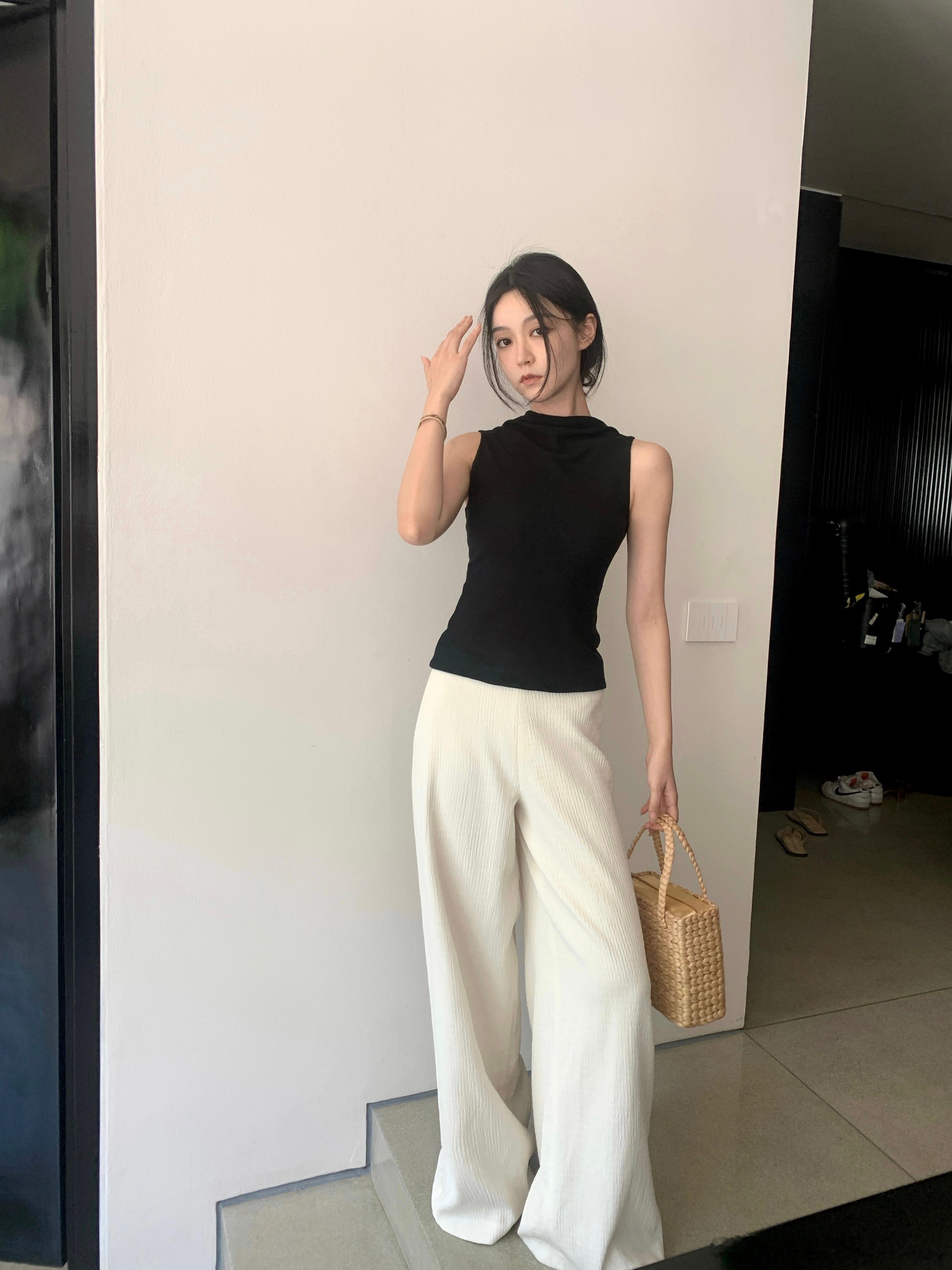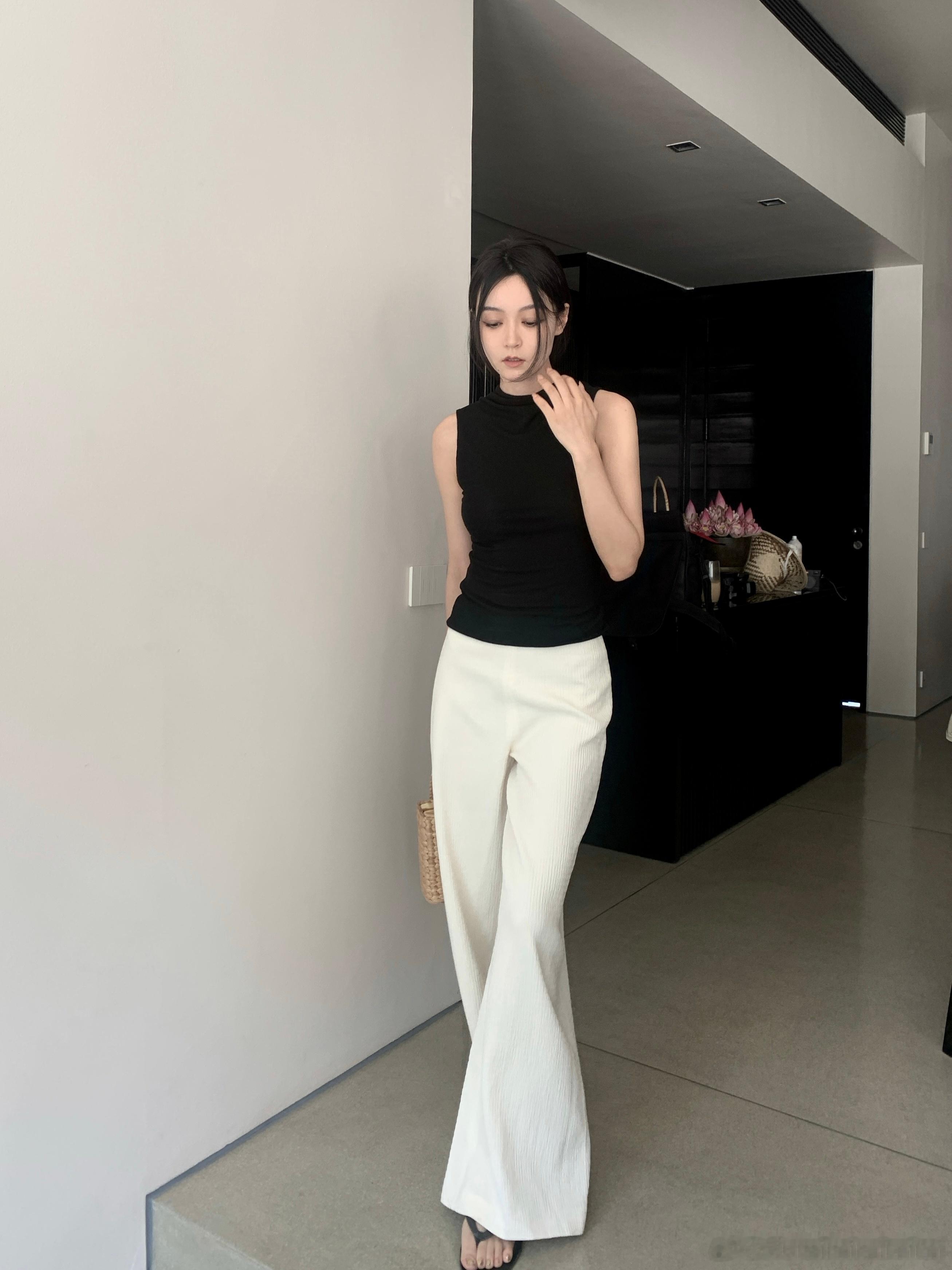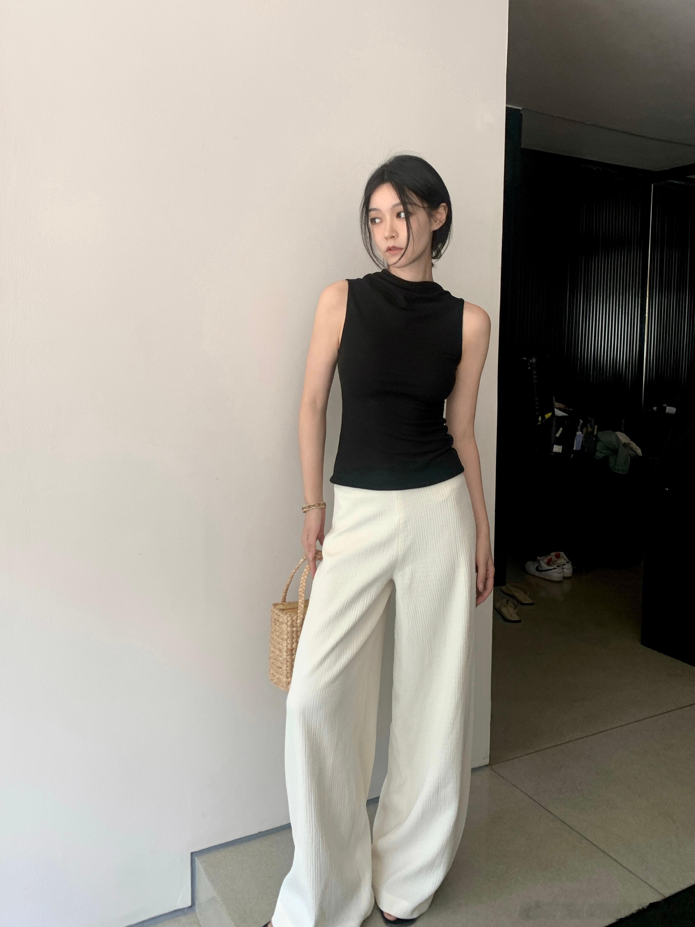 官搭黑色基础款针织背心 简简单单的 细看又都有一点儿小设计感 精致有品位的感觉 真的谁穿谁好看