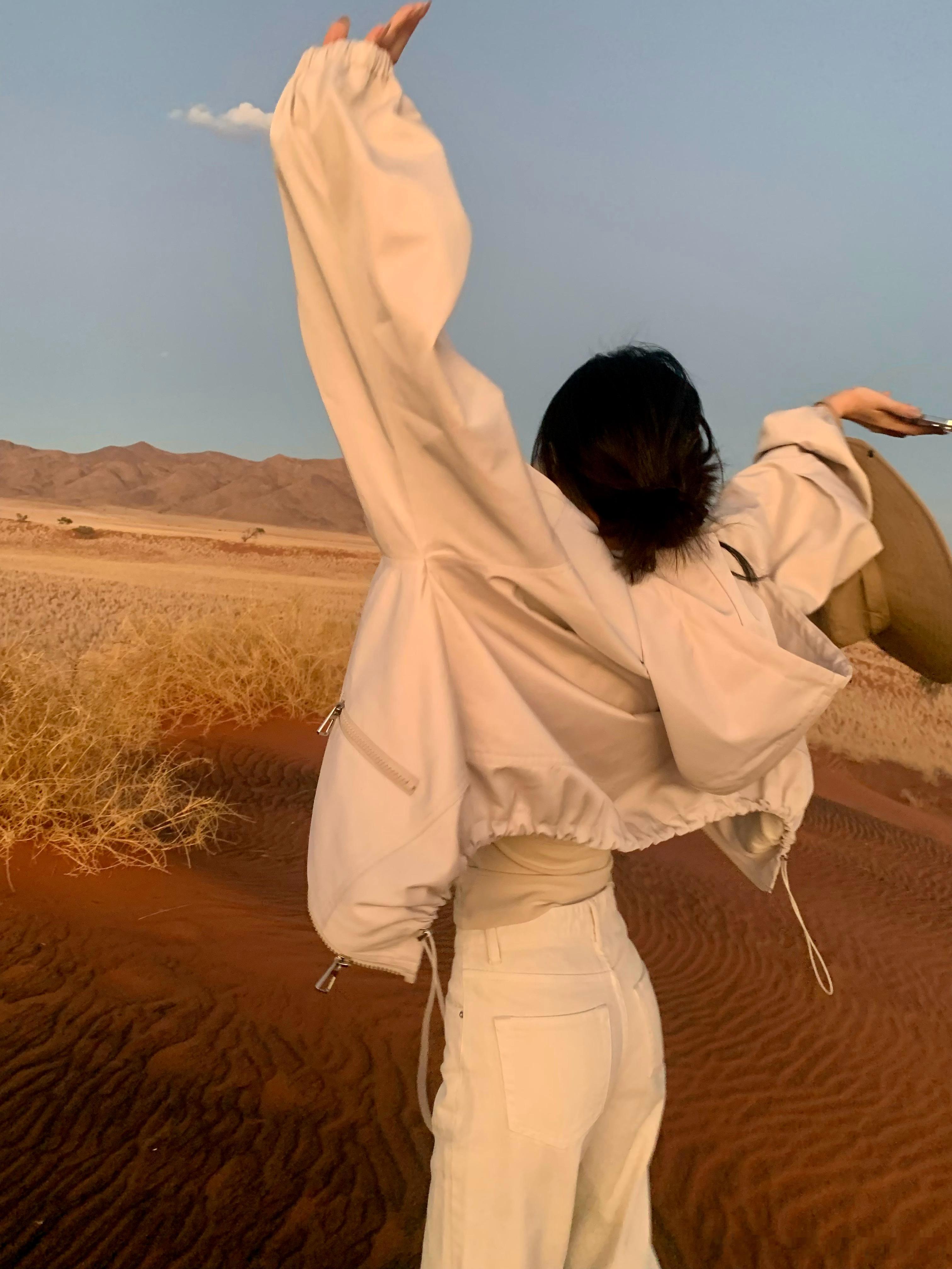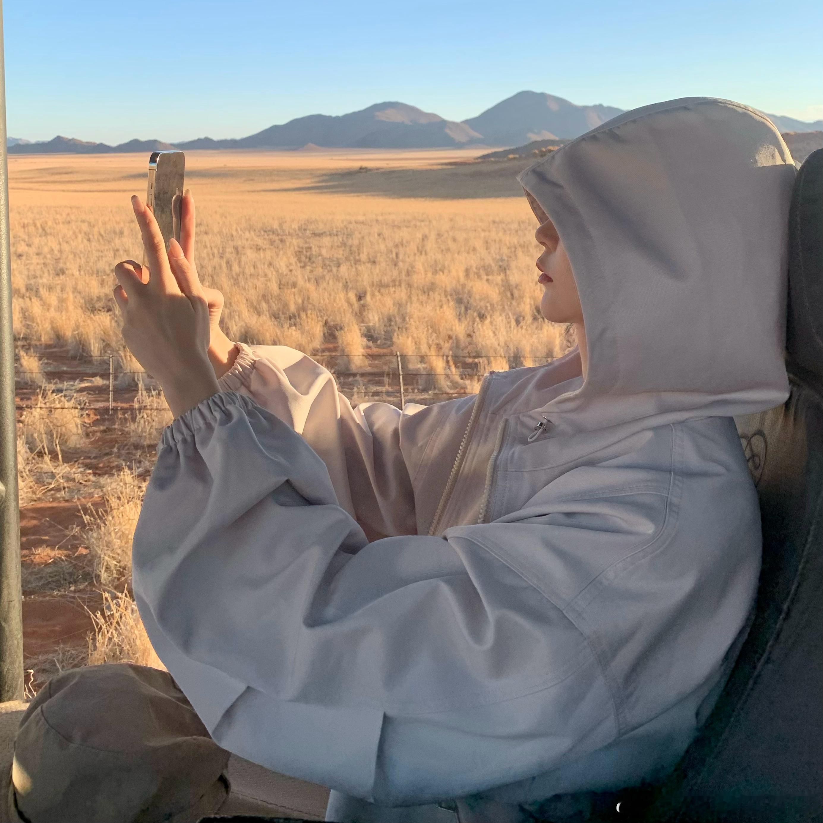 如果是去户外徒步 有风沙比较大的地方 也是非常不错的选择(上次去非洲出行每天出门都带上 包括坐飞机坐车)轻巧 方便穿脱 还具有防晒功能