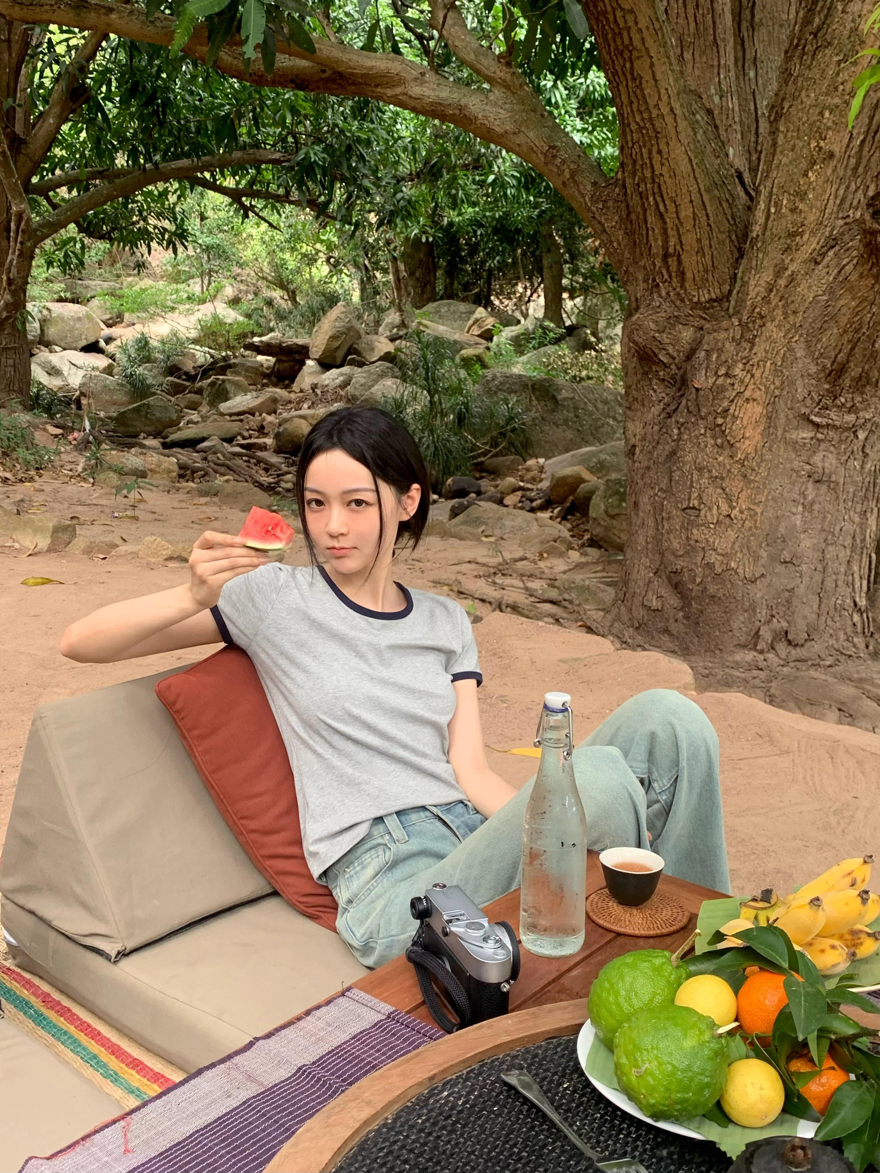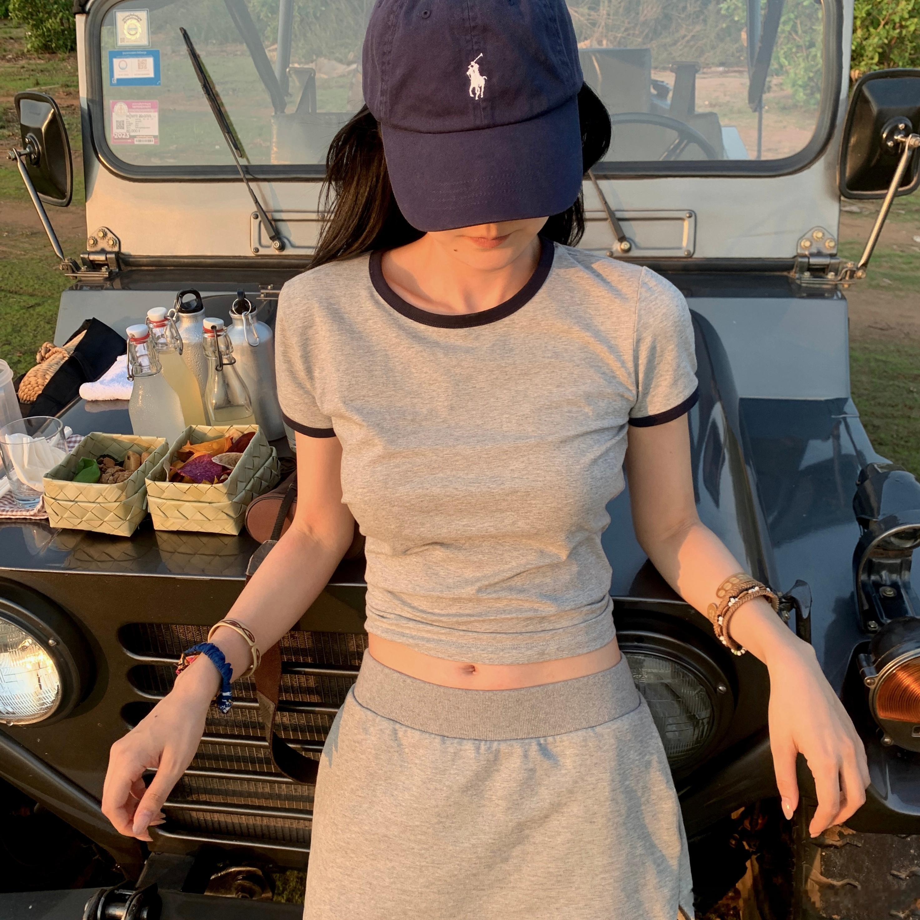 220g弹力T恤面料 大弹力 透气舒适 略松的版型 对身材包容性更好 偏正肩 绝绝子显瘦单品