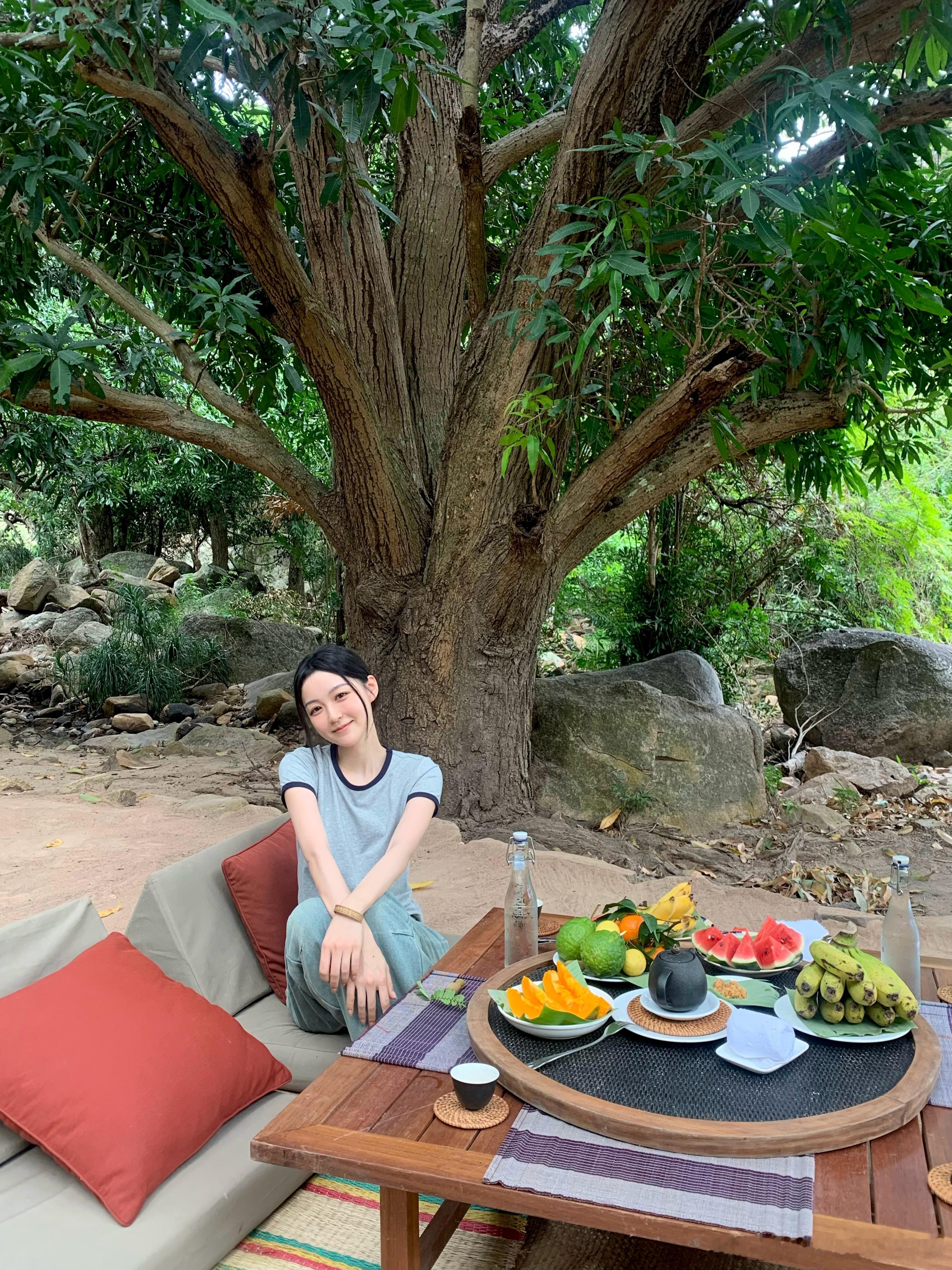 图6在越南芽庄森林里徒步小憩 身后是一颗大芒果树😍