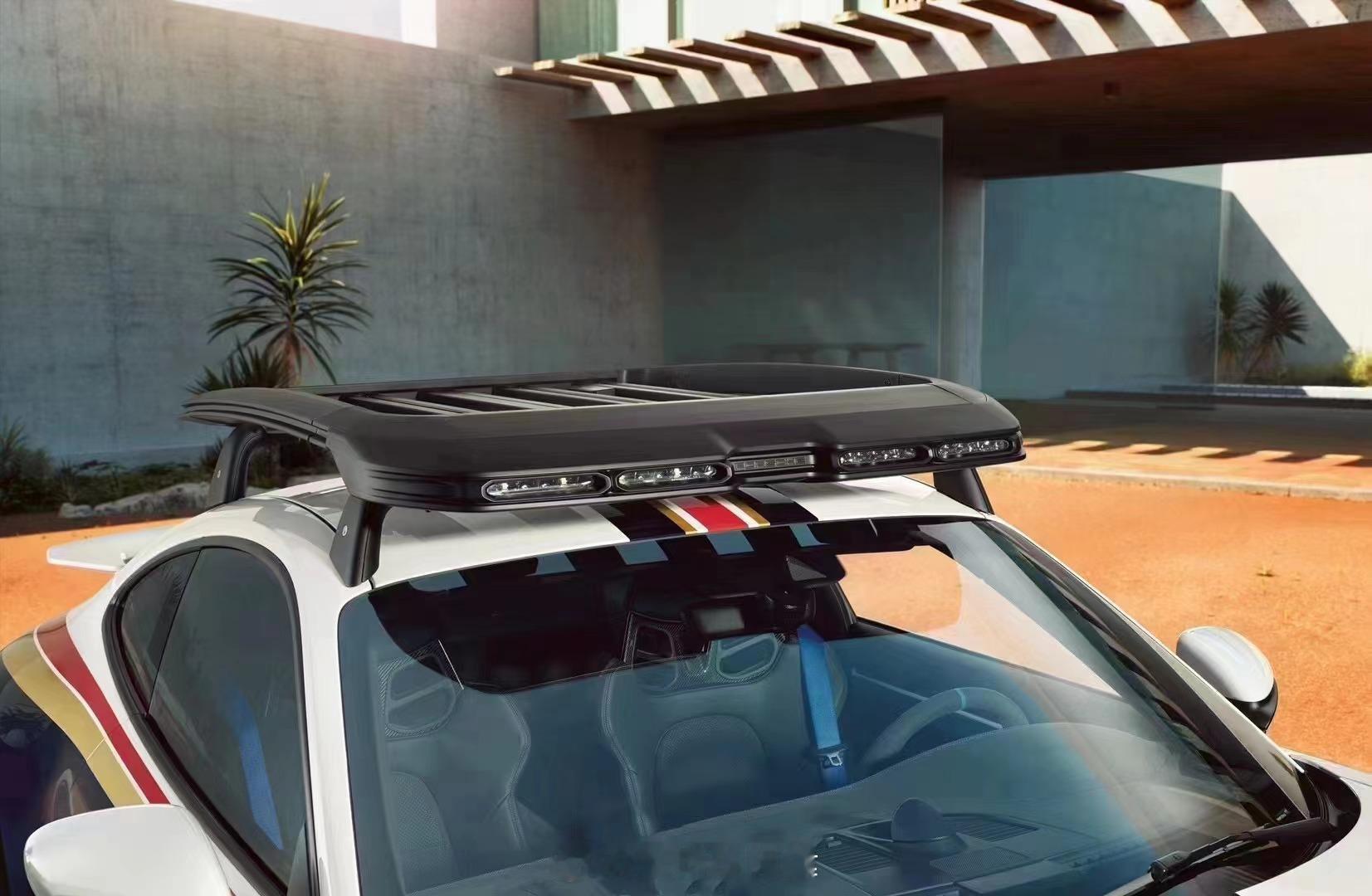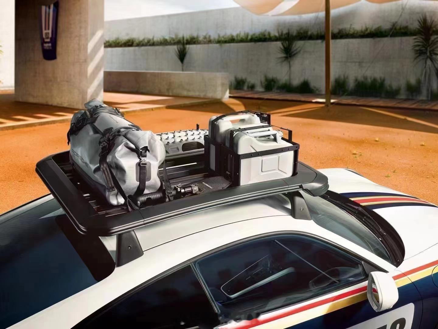 保时捷992 Dakar 达喀尔车顶拉力灯架套件!大全套!包含:两个水罐、罐支架、救援板和板支架、折叠铲和防水旅行袋。所有产品均带有醒目的“保时捷”标志,并可牢固地固定在车顶箱上,以便于驾驶。也可以单独购买每个配件!