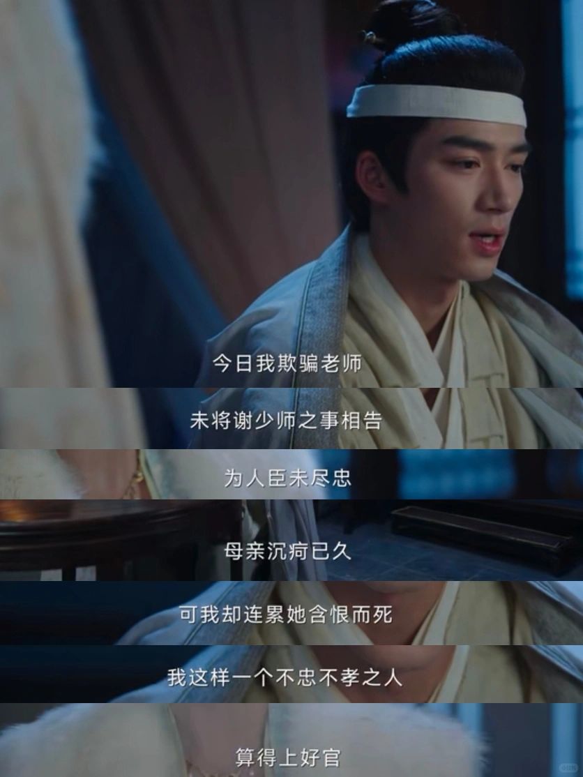 当他母亲去世后,他对姜雪宁说,自己欺骗老师,不上报谢危的事,是不忠;连累母亲而死,是不孝。一旦他认为自己做错了,就会自我折磨。