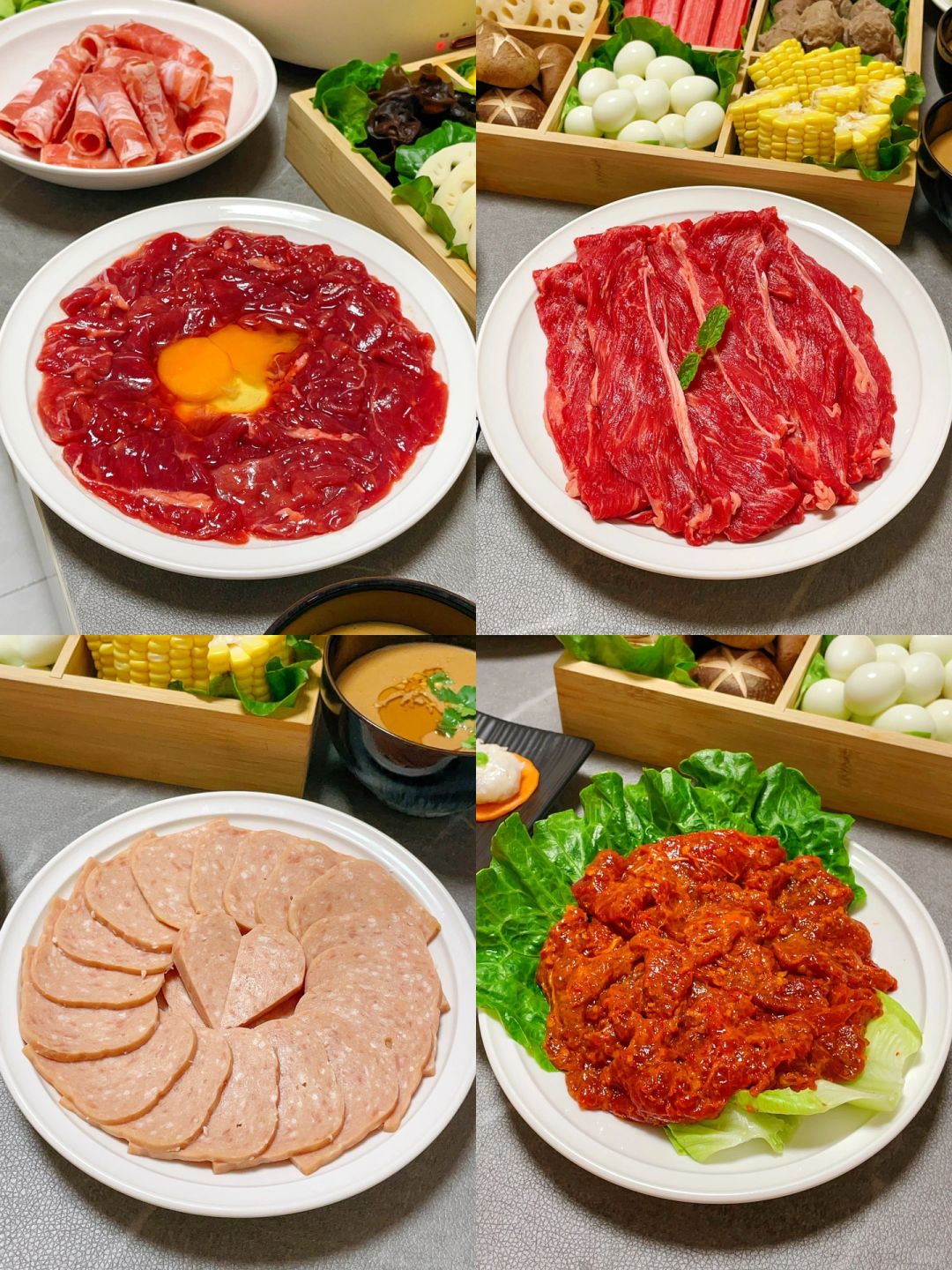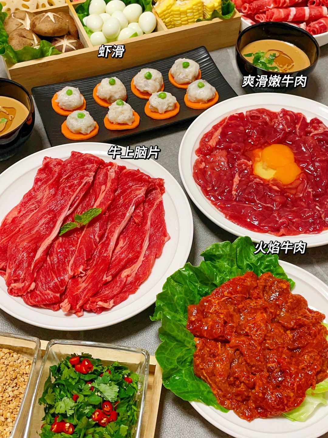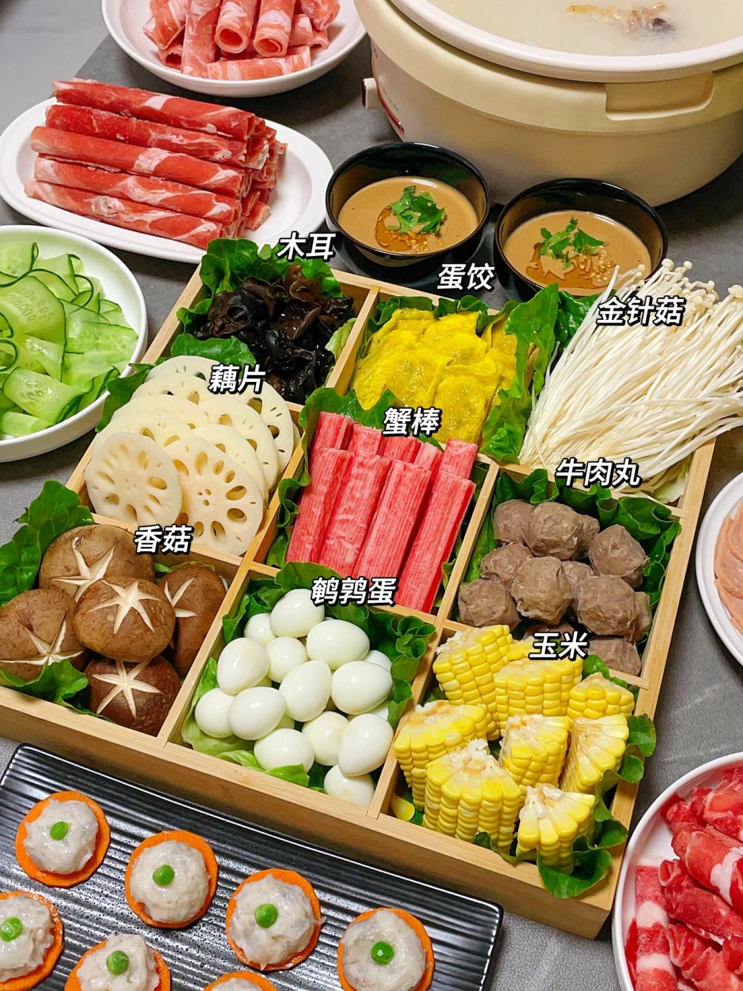 各种肉类、丸滑,肉质不柴不腥,满满的都是肉香味。还有火锅蔬菜、菌菇,有拼配好的净菜、很适合懒人操作。蘸料如果不想自己调也可以直接买现成的,味道完全不输火锅店。