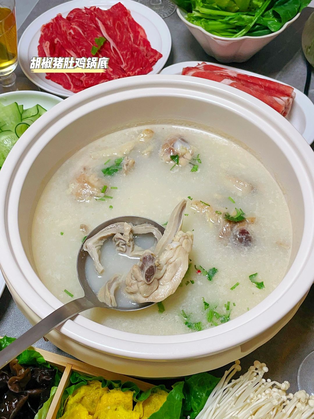 今天是胡椒猪肚鸡火锅,鲜美的猪肚和大块鸡肉,先喝汤再涮肉,每一口都是享受。