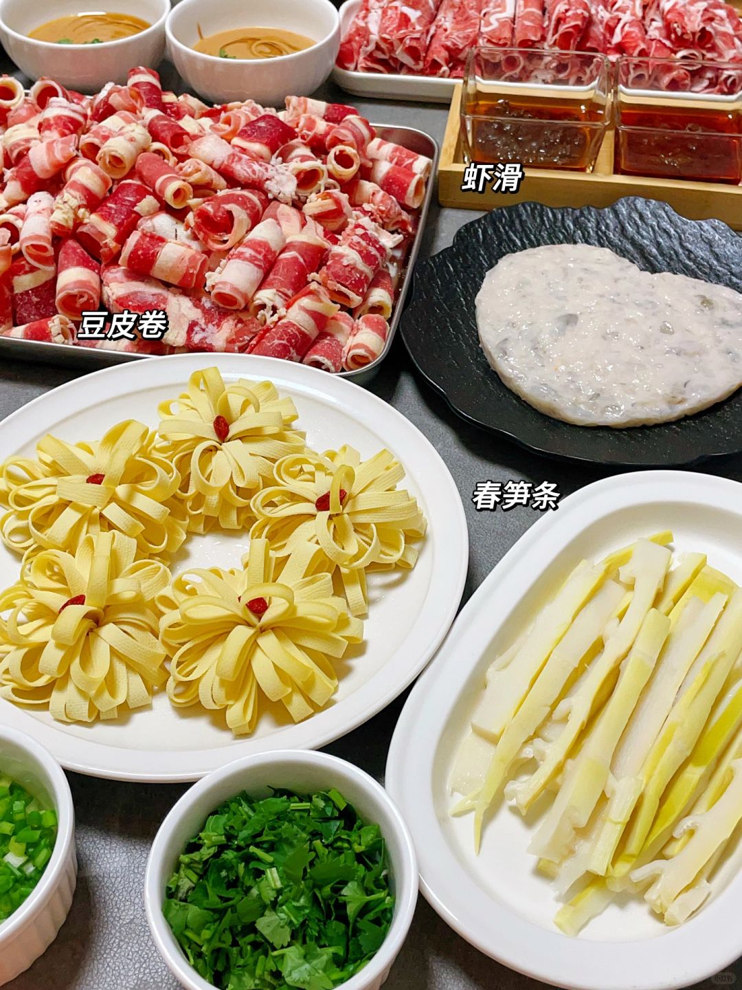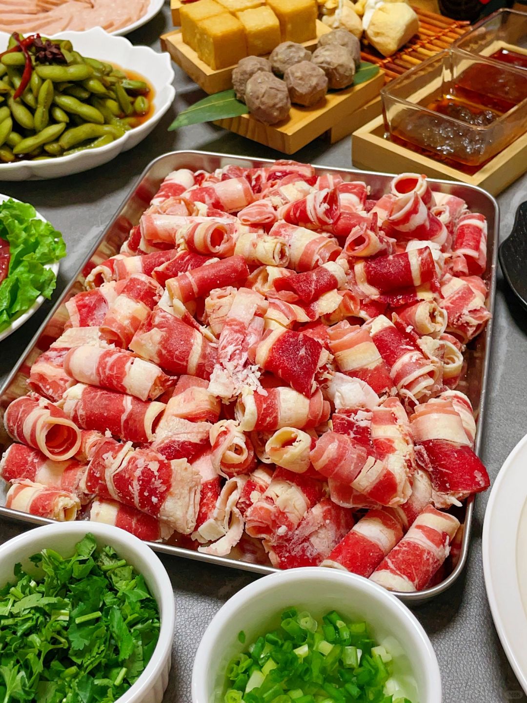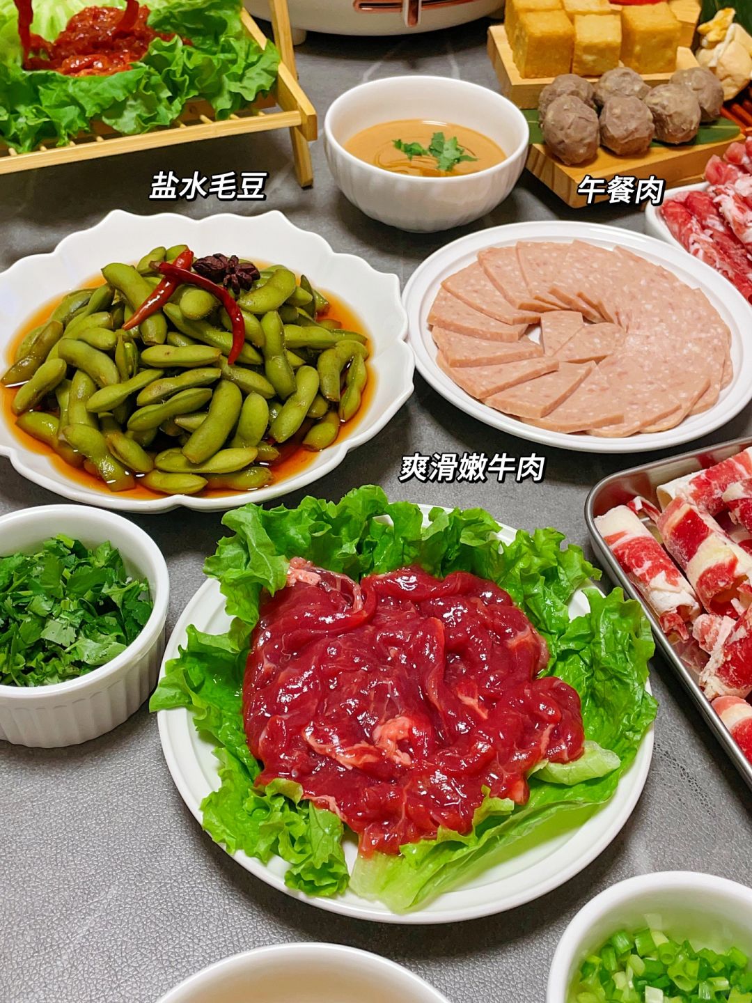 【荤菜】:爽滑嫩牛肉、筷子牛肉、肥牛卷、午餐肉