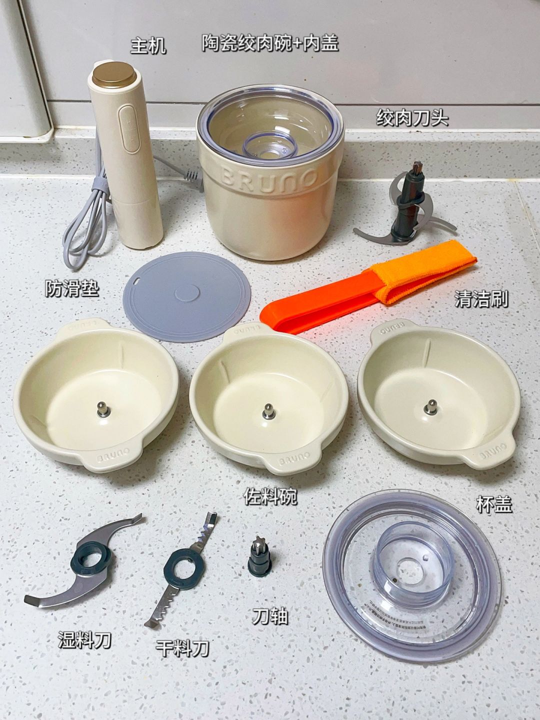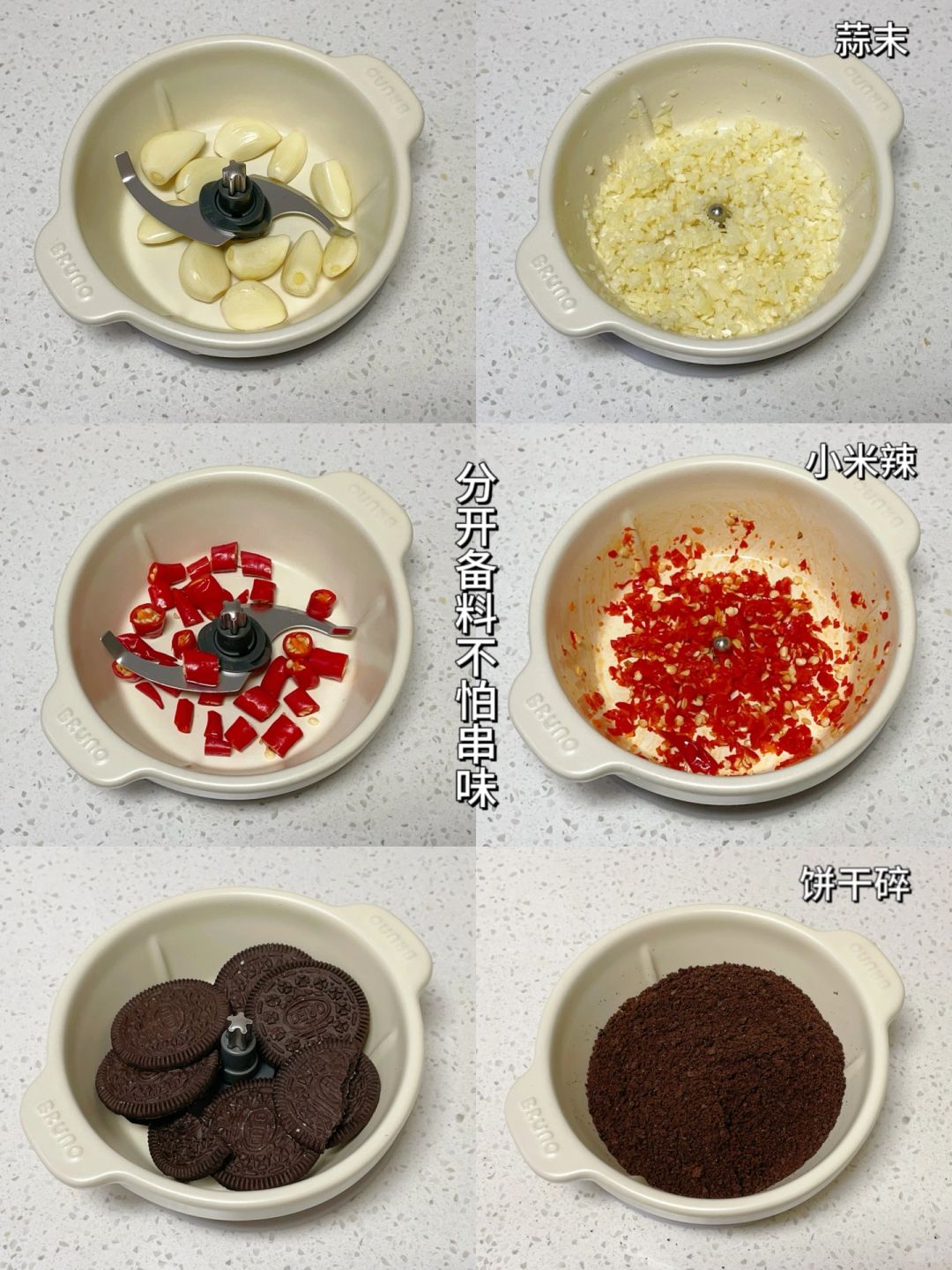 好用的厨房小电器真的能大大提升做饭效率!之前我嫌备菜太慢太繁琐,入手了BRUNO小陶器佐料机,终于实现了高效备餐。跟我旧的绞肉机不同,它的碗体是陶瓷天然材质,高温烧制不容易破裂,用着健康安全。耐冷耐热,可以直泼热油当味碟使用,也可以进蒸锅、放洗碗机都没问题。像搅肉馅、虾泥等只需5秒就很细腻了。