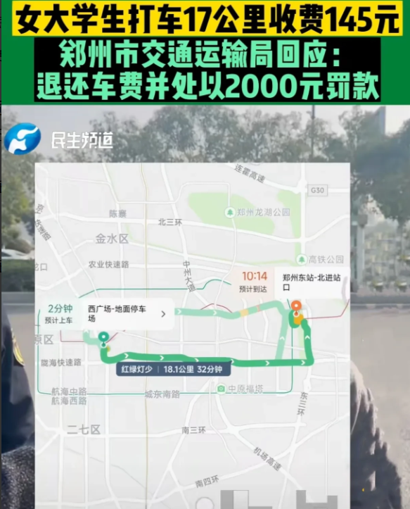 “大快人心!”河南郑州,一女子打车,从郑州火车站到郑州东站,17公里的路程,竟然花了145元的车费。事后,出租车司机被找了出来,她承认自己多收了钱:“我就是一迷一顿,多报了一点点。”结局让人意想不到。