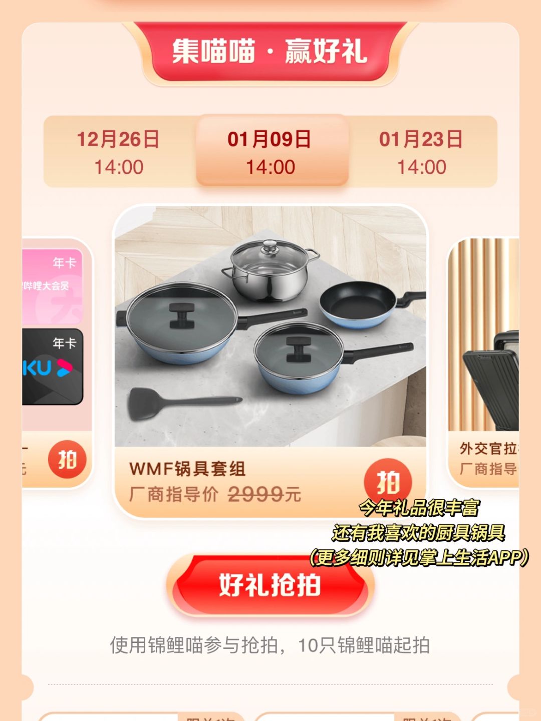 第一轮看到有人花了1️⃣0️⃣只喵就得到了康宁炒锅!好心动,我打算1月9号第二轮pai个锅具套组!喵先集着,如果没pai到,dui换些东西也是好的,新年了,也算给自己讨个彩头!