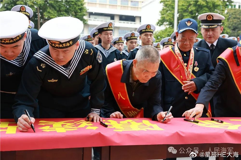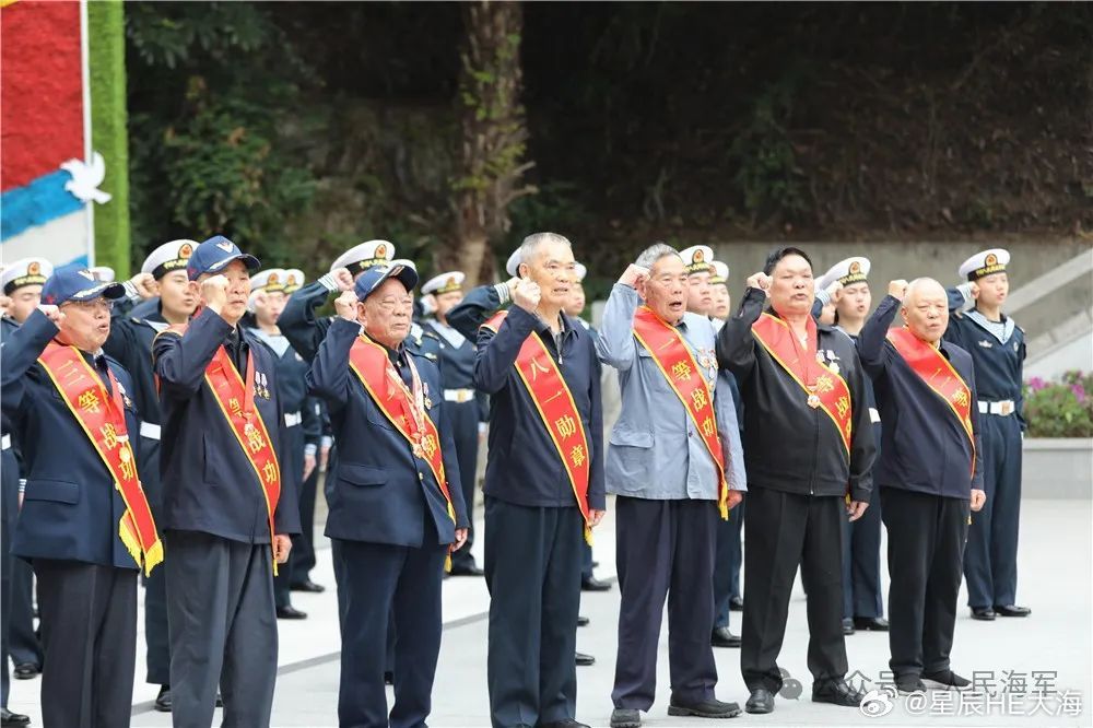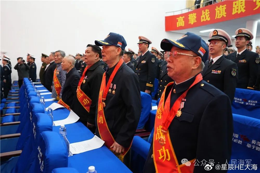 3月22日东部战区海军某护卫舰支队组织两面战旗荣誉传承战斗英雄、“八一勋章”获得者麦贤得,一等战功功臣王木昌、洪板波二等战功功臣傅金泉、邝孔华、周巨洪三等战功功臣李朝相7名平均年龄超过81岁的海战参战功臣亲临现场#烽火问鼎计划#