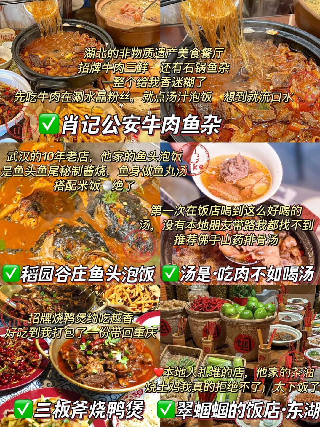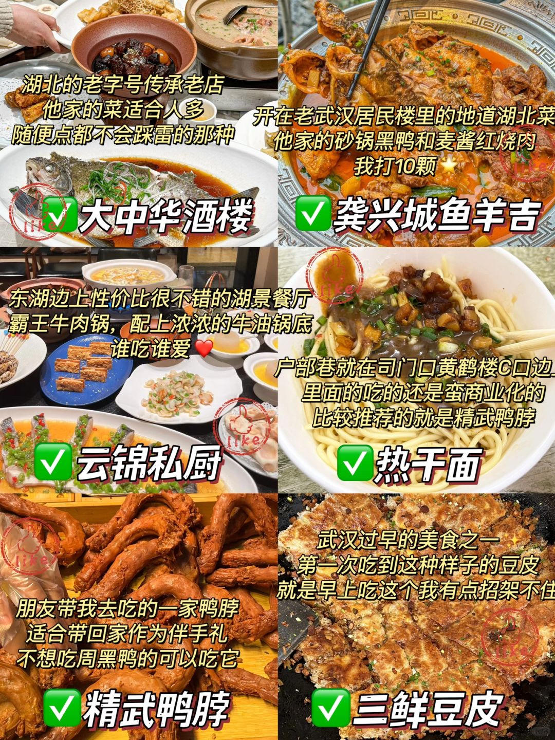 热干面、汽水包、鸡冠饺、蛋酒、生烫牛肉粉、酥饺、糯米包油条、重油烧卖、茶颜悦色、爷爷不泡茶、鲜鱼糊糖粉、三鲜豆皮