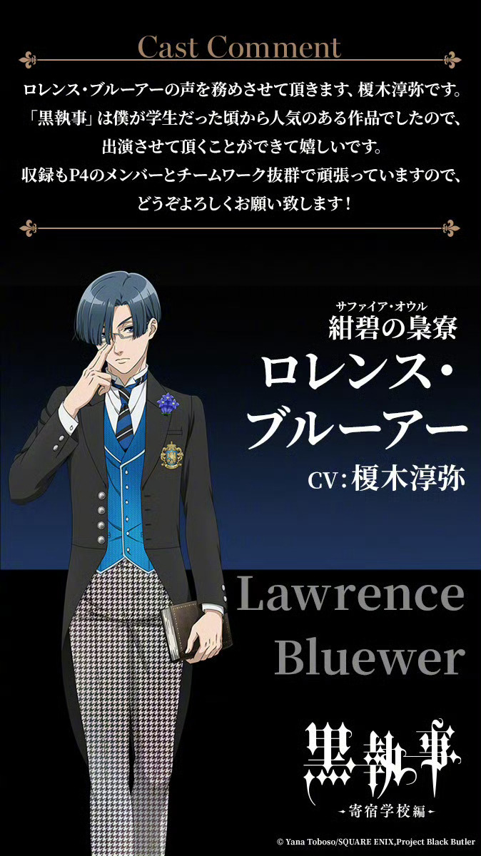 「黑执事」新作动画「寄宿学校篇」角色CAST公开 2024年4月13日开播!