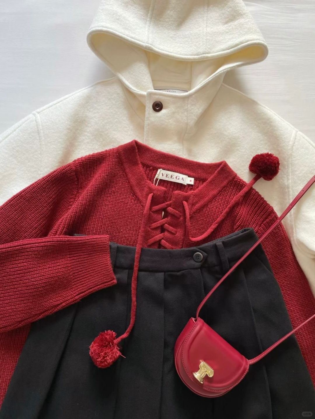 运动后放松时刻,穿红色卫衣,享受宁静时光。