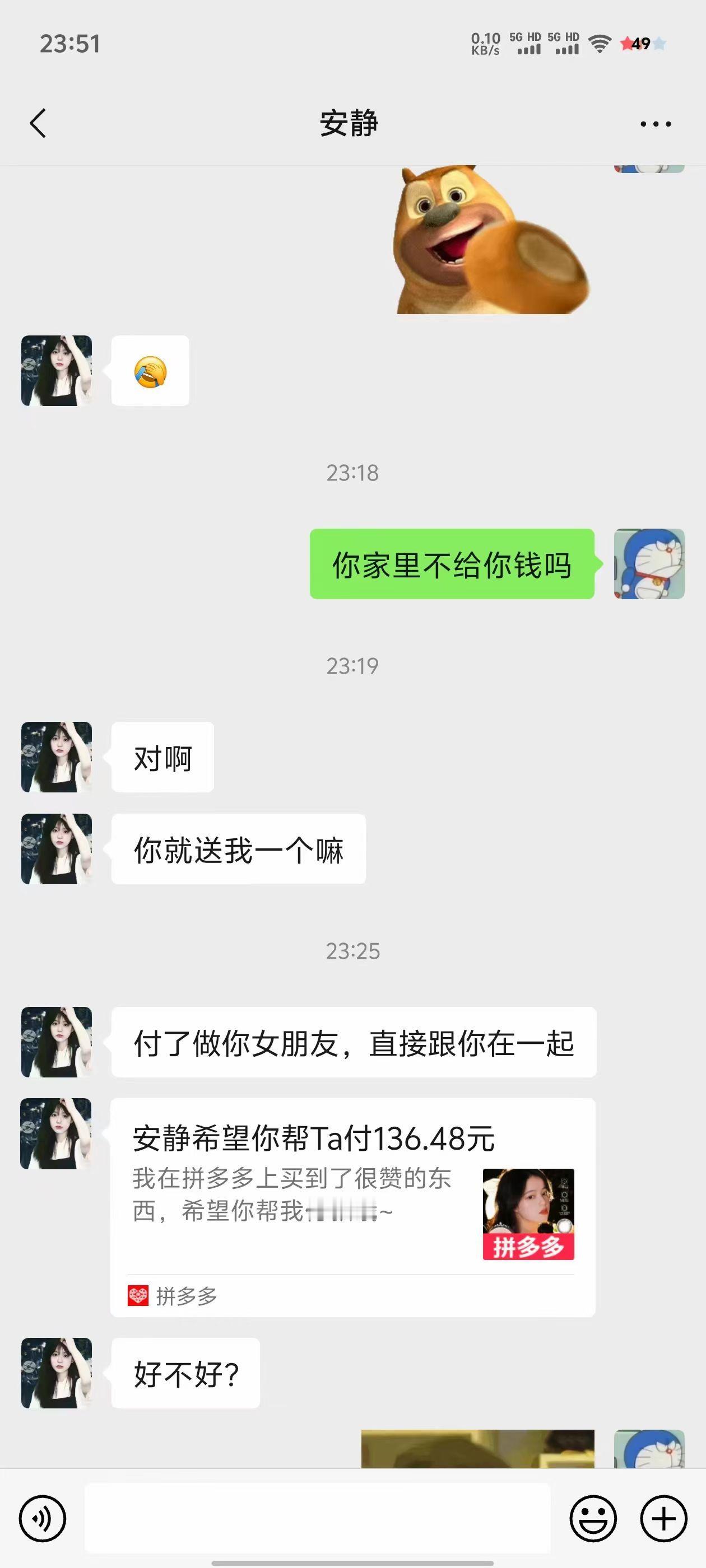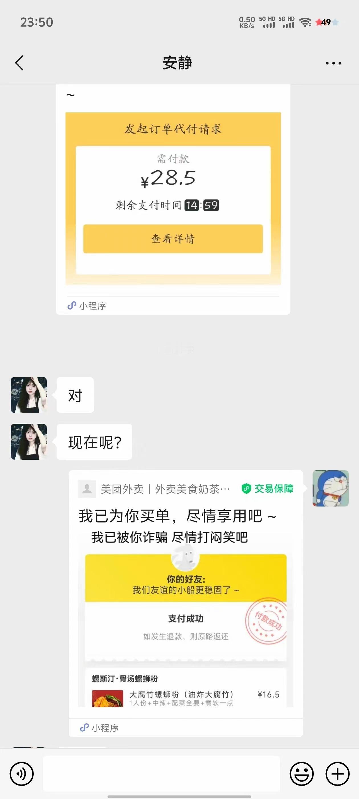 我已为你买单,尽情享用吧→我已被你诈骗,尽情举报吧